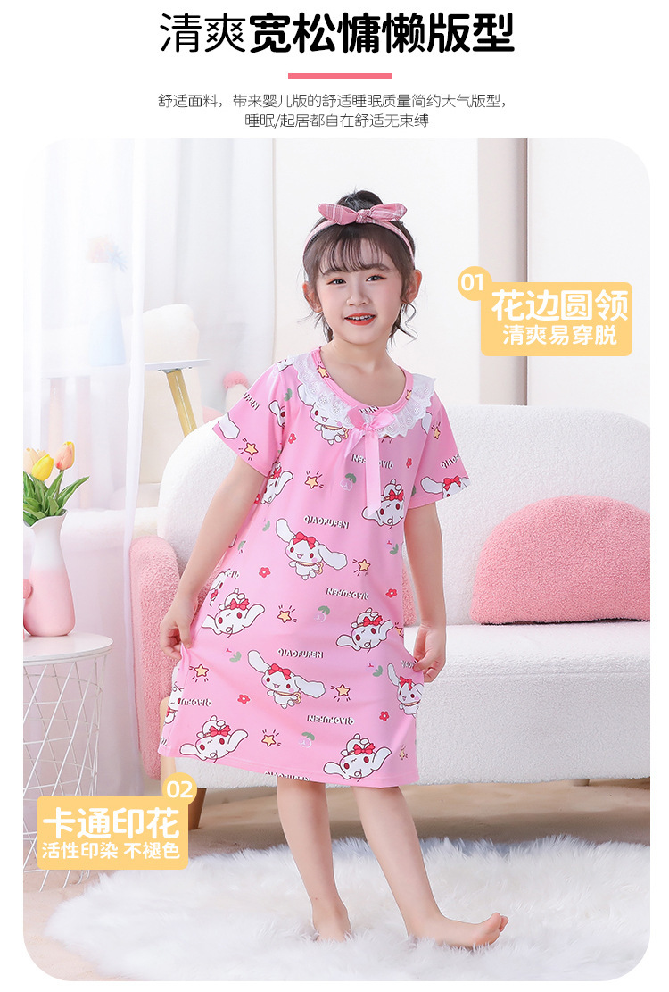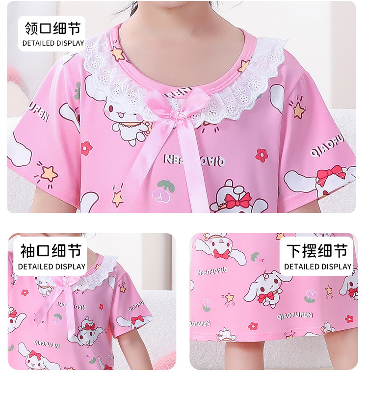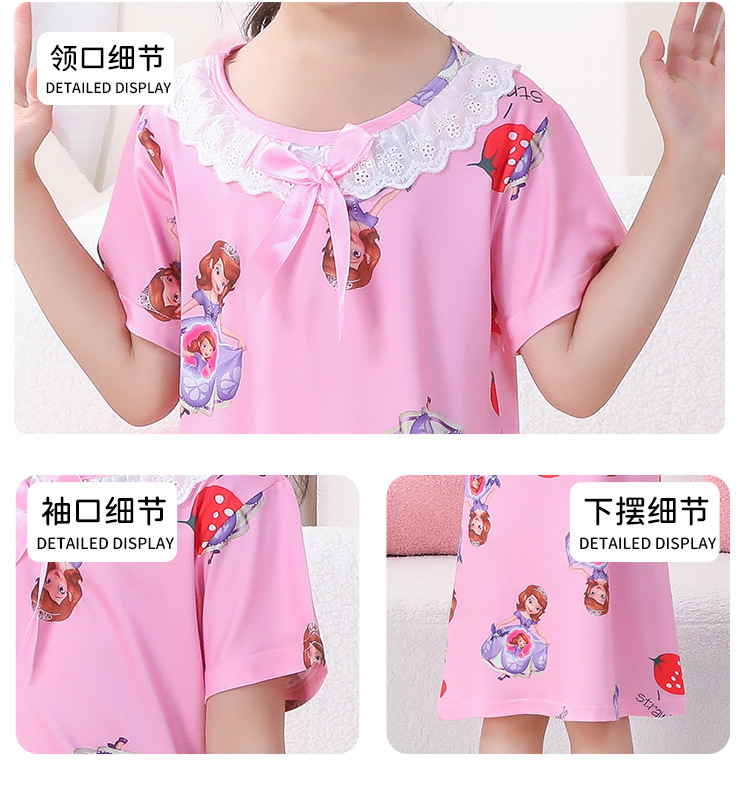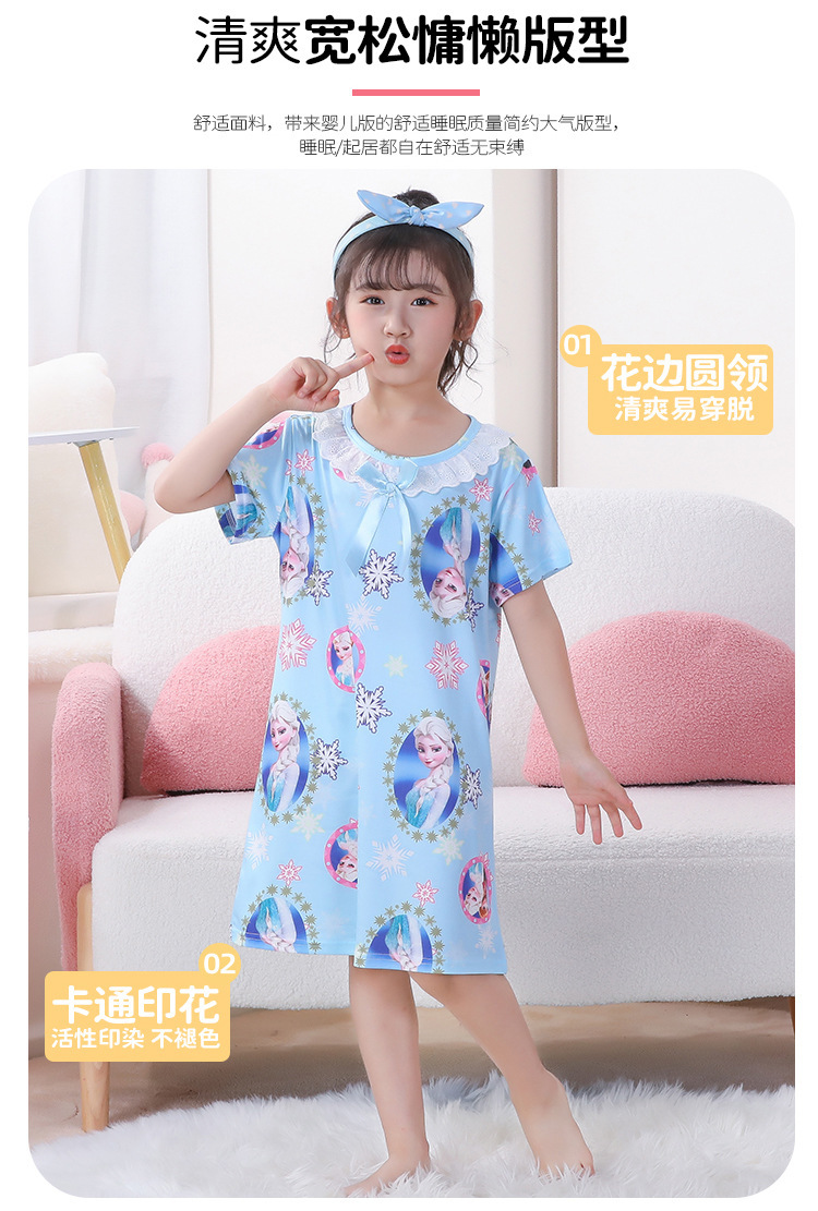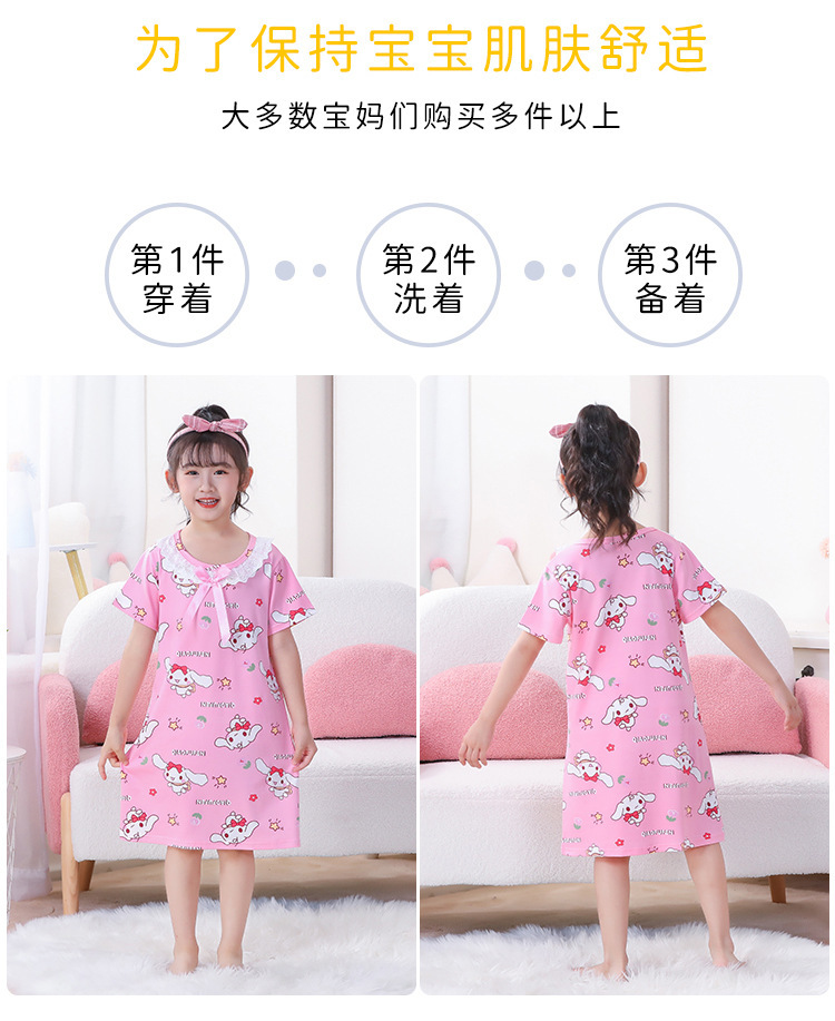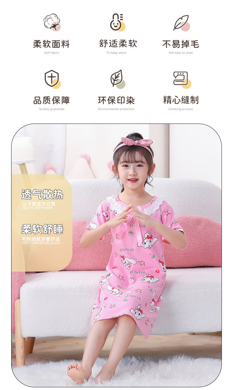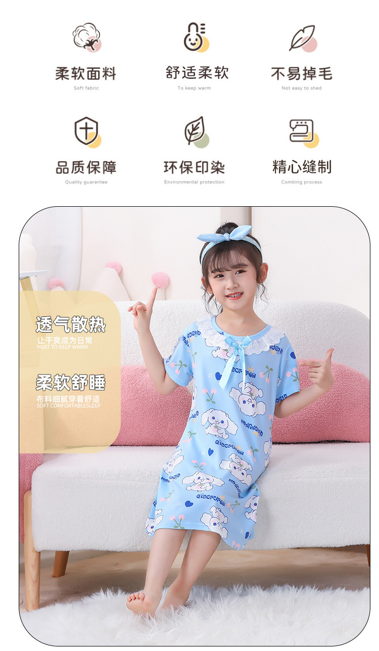 Летняя ночная рубашка для девочек с короткими рукавами, кружевная юбка с милым рисунком, цельная юбка для маленьких девочек, детская одежда, детская домашняя одежда среднего и большого размера