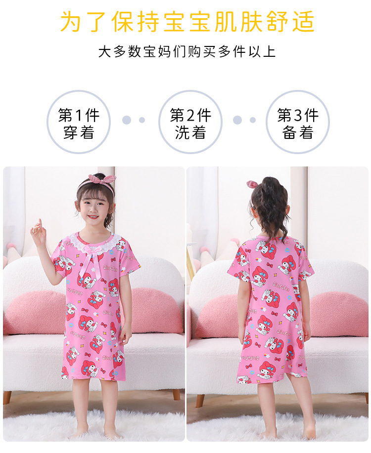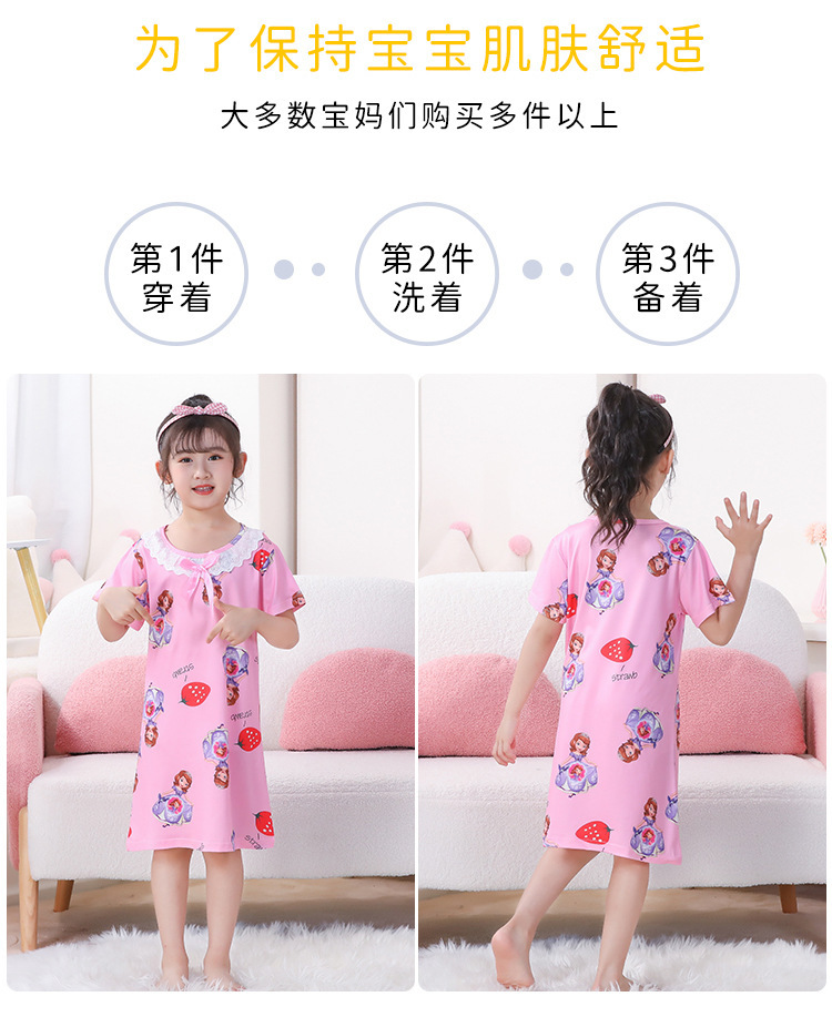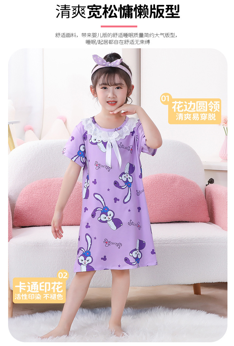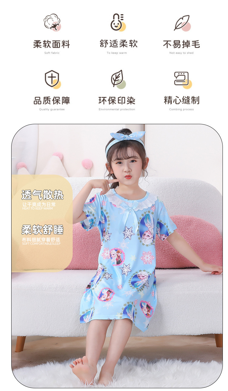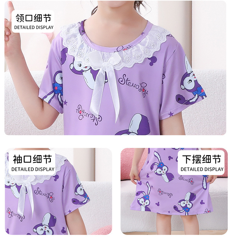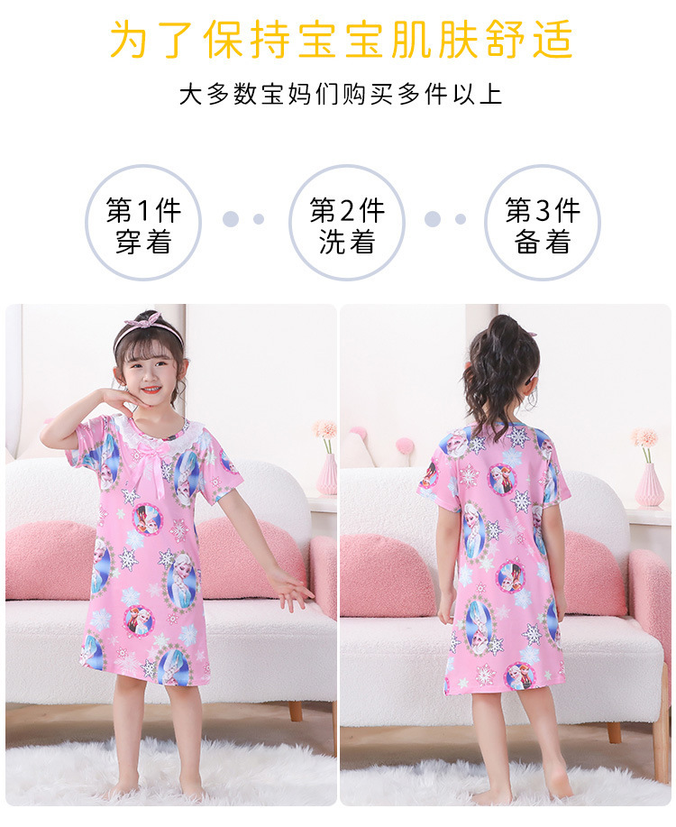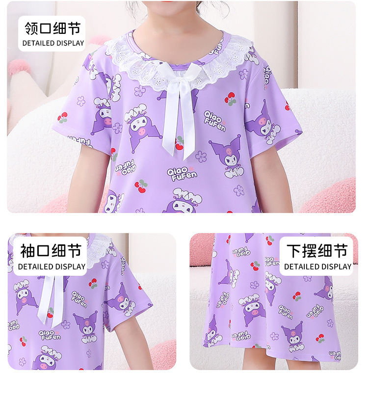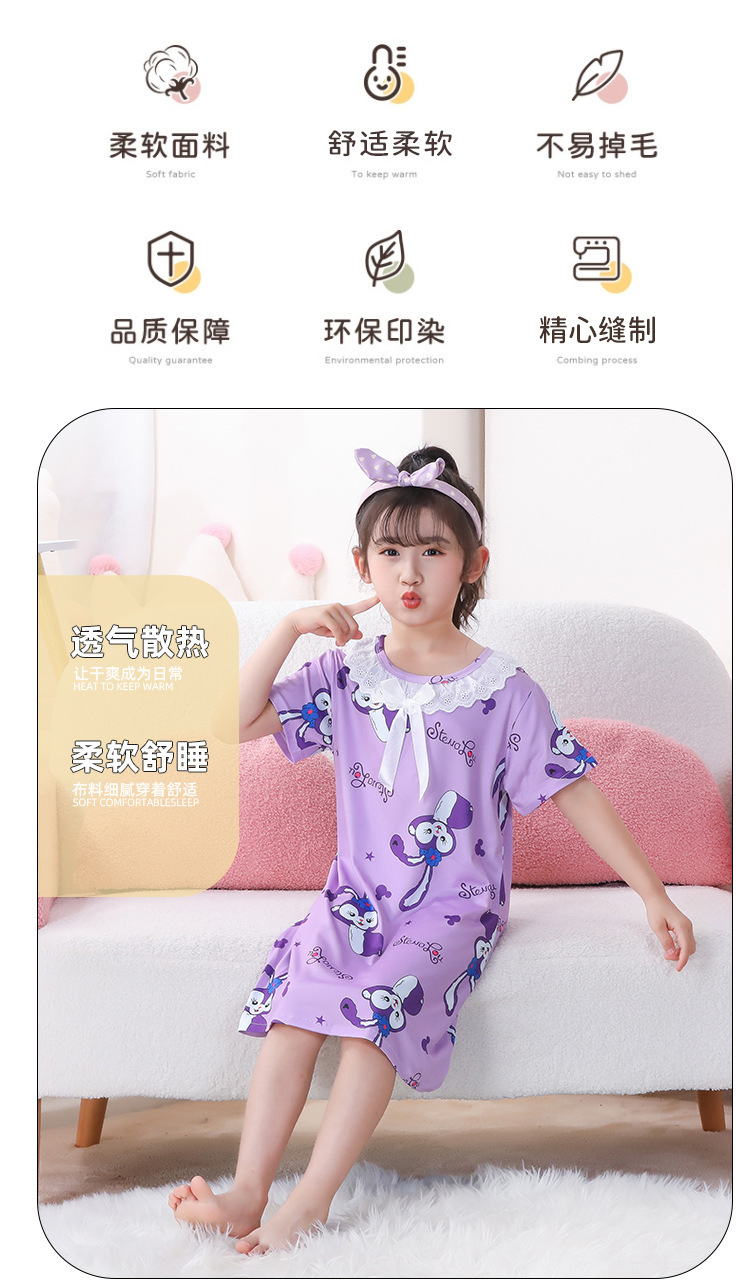 Летняя ночная рубашка для девочек с короткими рукавами, кружевная юбка с милым рисунком, цельная юбка для маленьких девочек, детская одежда, детская домашняя одежда среднего и большого размера