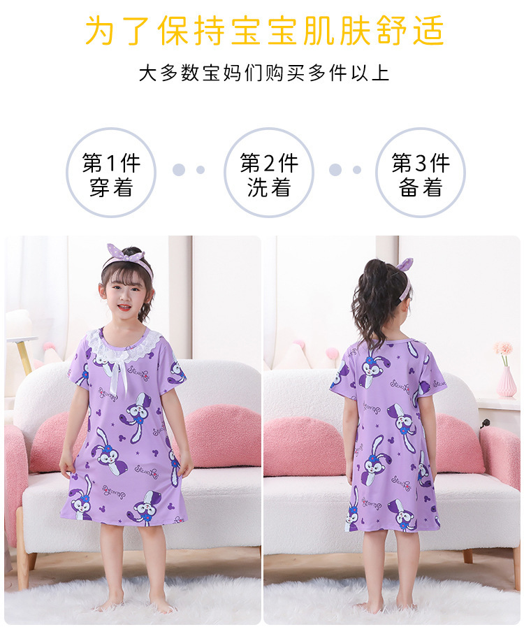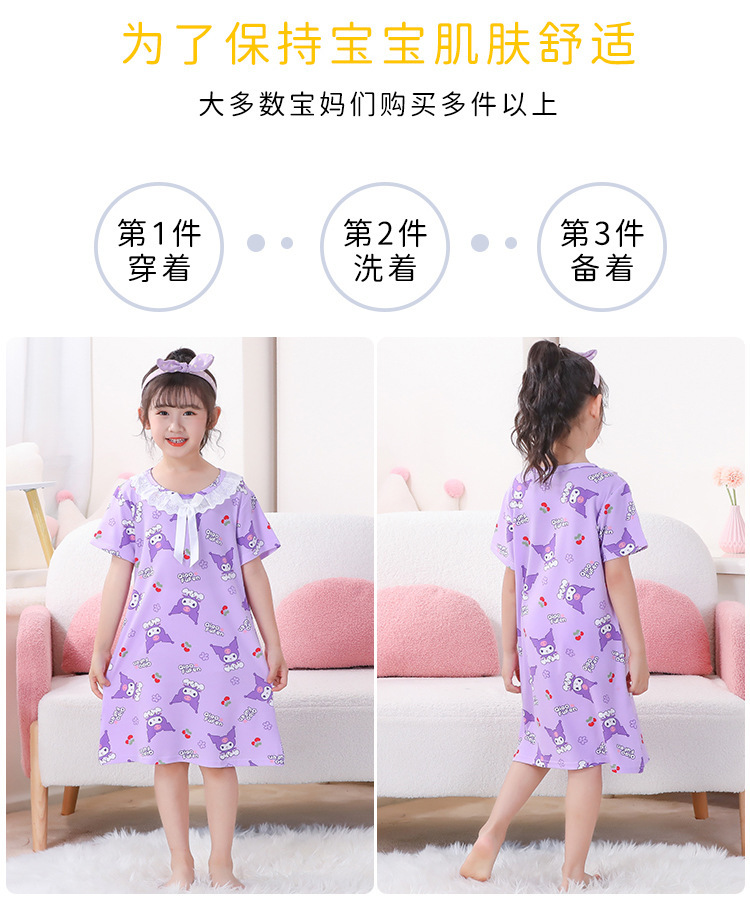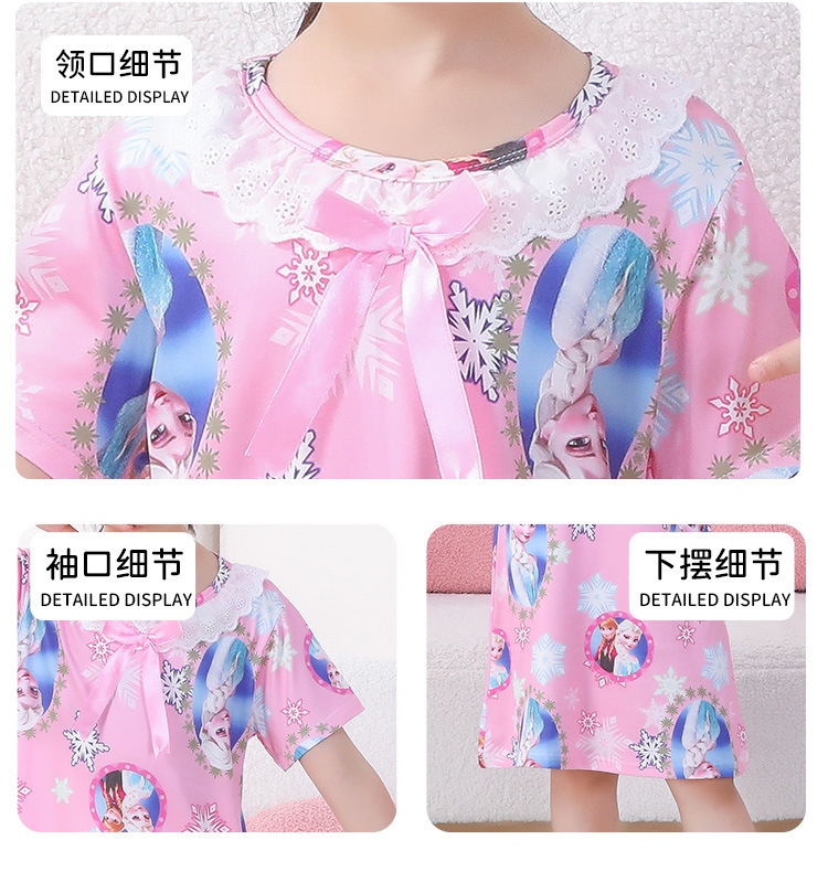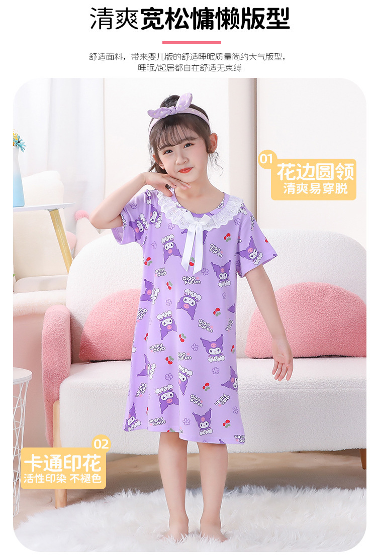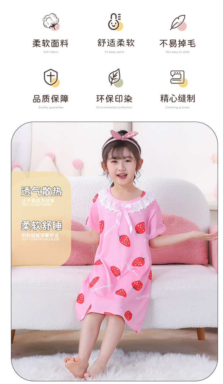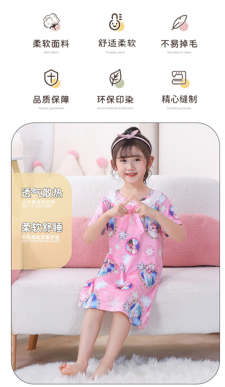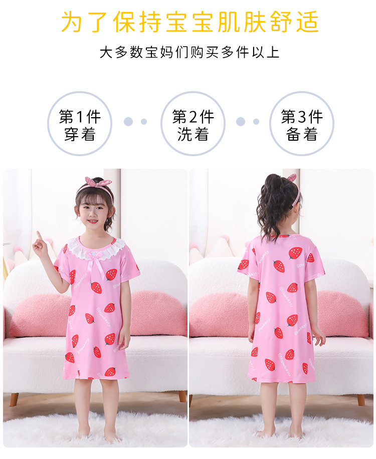Летняя ночная рубашка для девочек с короткими рукавами, кружевная юбка с милым рисунком, цельная юбка для маленьких девочек, детская одежда, детская домашняя одежда среднего и большого размера