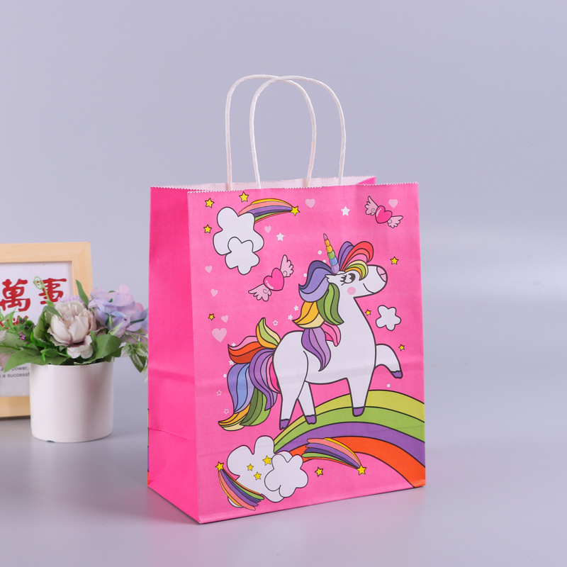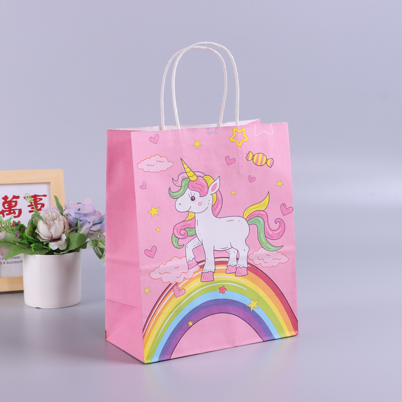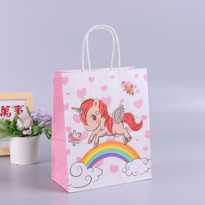 Оптовая Мультфильм Единорог Крафт Бумажный Мешок Праздник Дети Конфеты Игрушка Подарок Реклама Подарочная Упаковка Сумка
