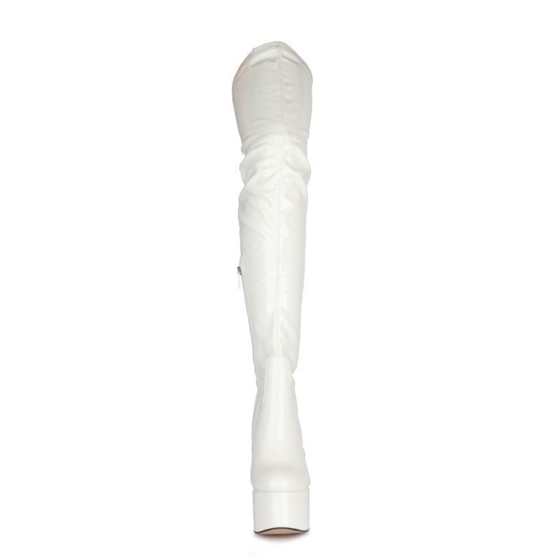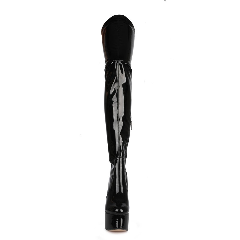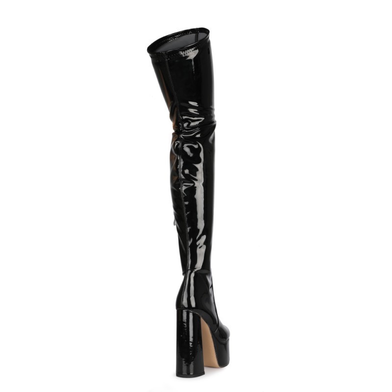 2023 Европейская и американская внешняя торговля с круглым носком и сверхвысоким каблуком из лакированной кожи выше колена Узкие женские модные кожаные сапоги большого размера