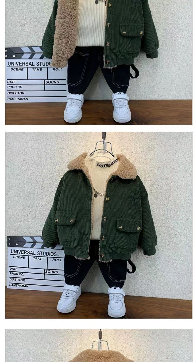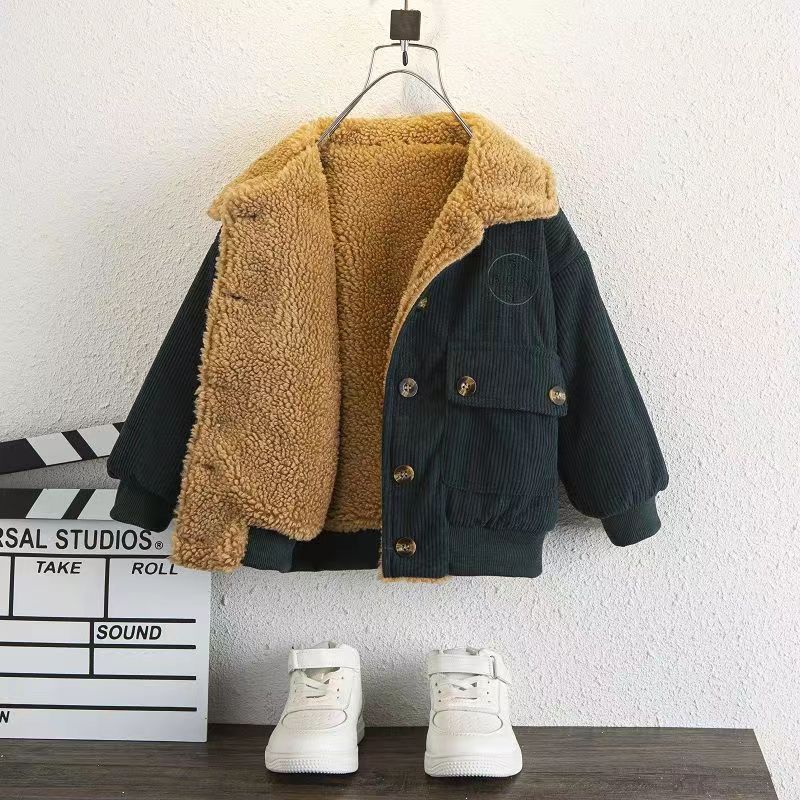 Вельветовая куртка для мальчиков, новинка 2024, модная детская утепленная куртка, зимний бархатный топ, детская хлопковая верхняя одежда