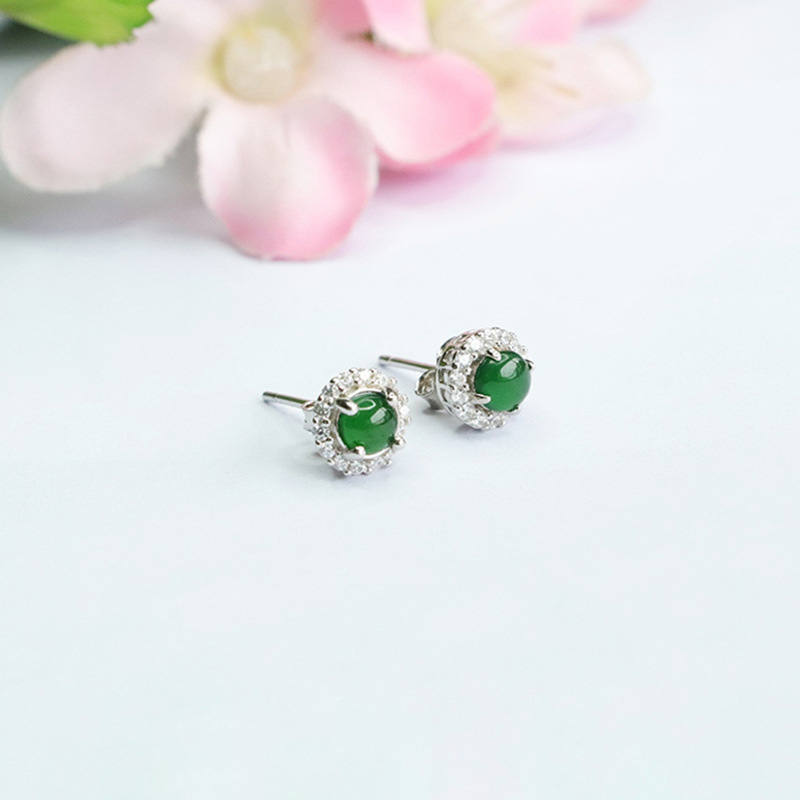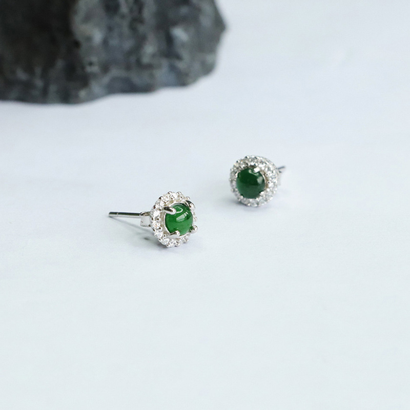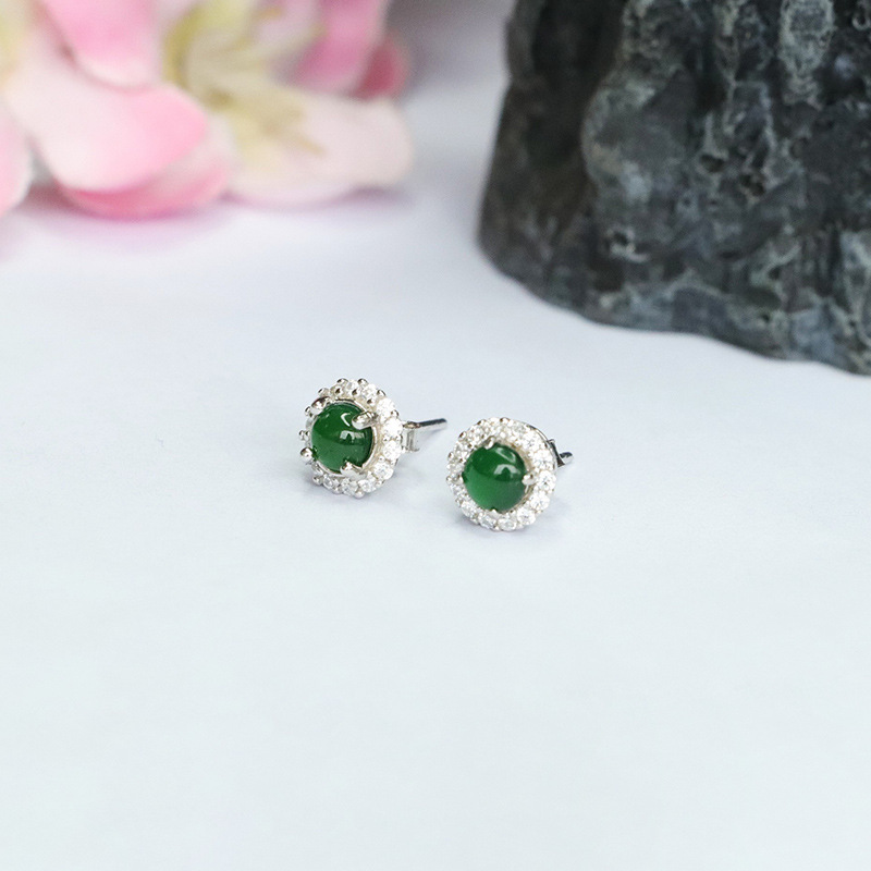 Серьги из серебра S925 с натуральным нефритом, императорский зеленый цвет, оптовая продажа от ювелирной фабрики FC3060101