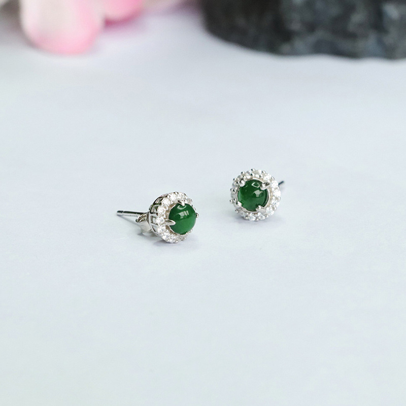 S925 Серебряный набор льда император зеленая яичная лапша, полная серьги-сверла