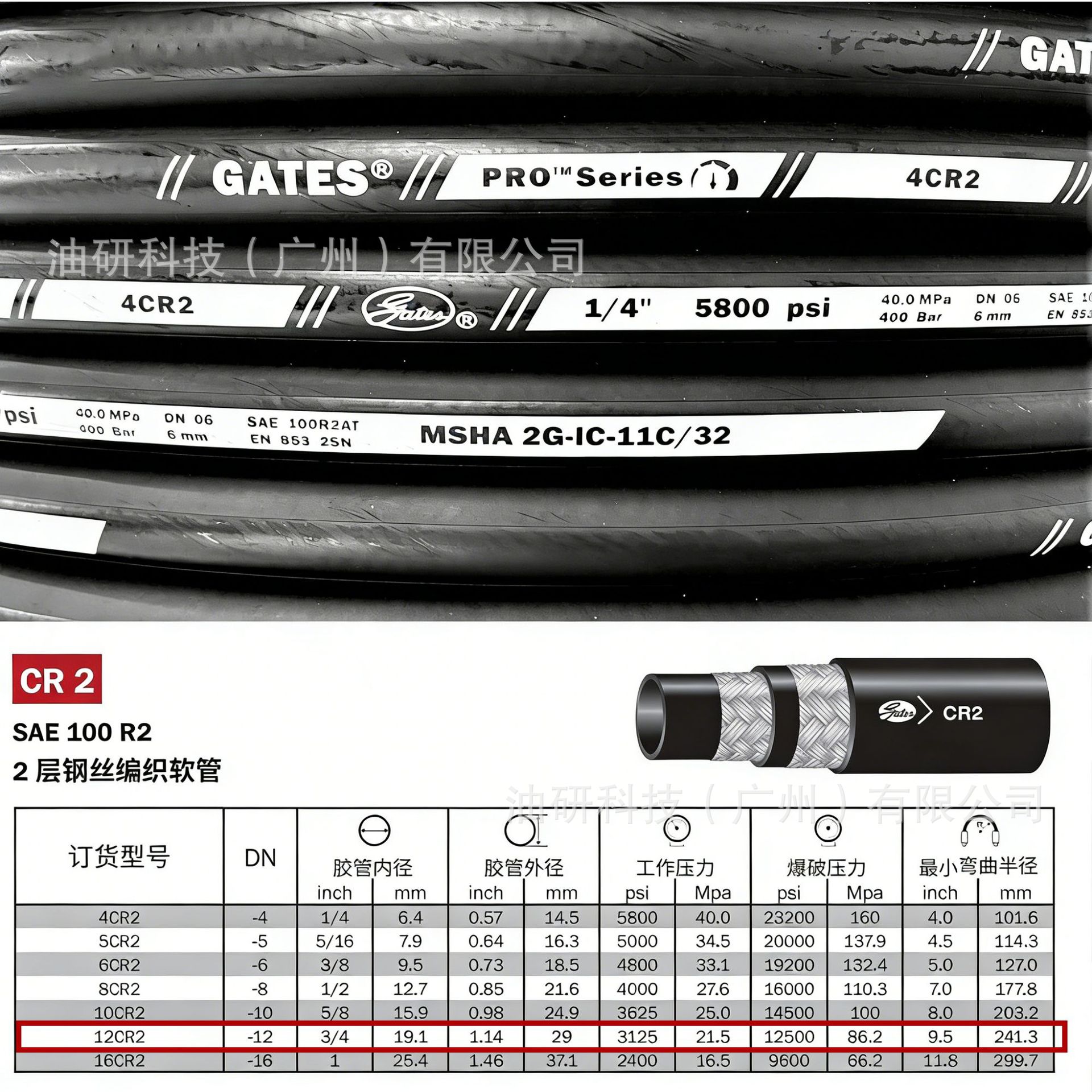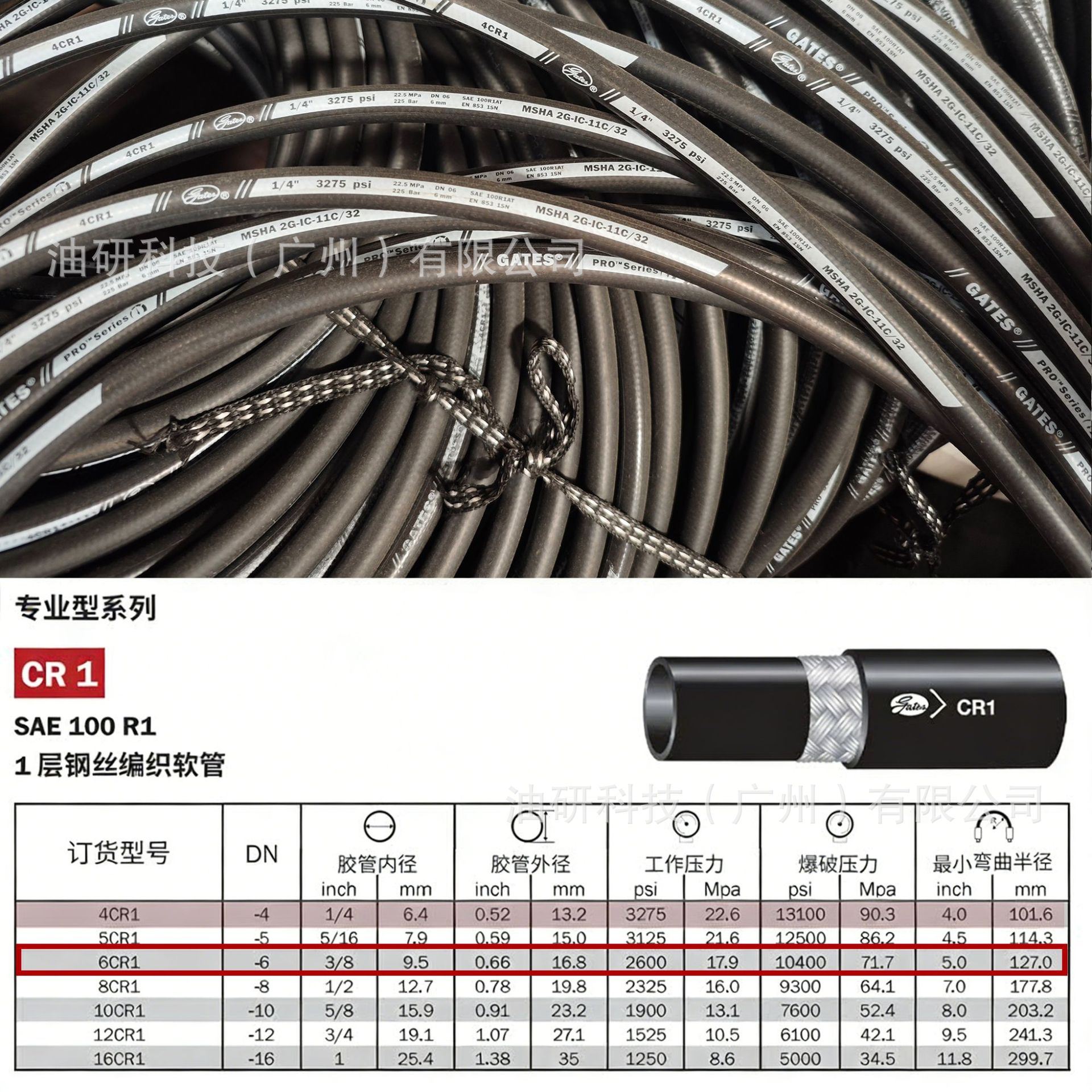 Высоконапорный маслопровод Gates EFG6K 4XH с оплеткой из стальной проволоки, гидравлический шланг высокого давления Caterpillar в сборе