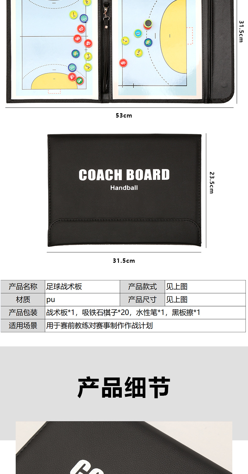 Гандбольная тактическая доска Цвет 2,5 Складная тренерская доска Кожаная учебная доска Магнитная с ручкой Три складных