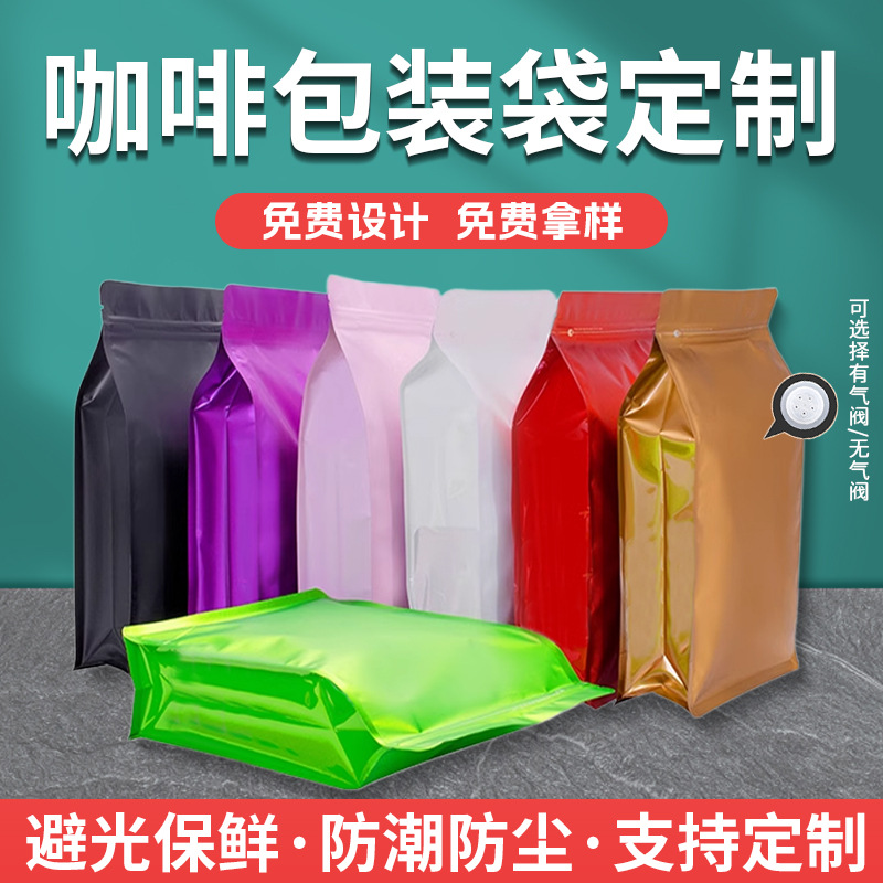 Кофейный мешок Алюминиевая фольга Самоуплотняющаяся упаковочная сумка Мешок для кофейных зерен Закуски для чая и отдыха Восьмисторонняя уплотнительная застежка-молния Сумка для упаковки пищевых продуктов