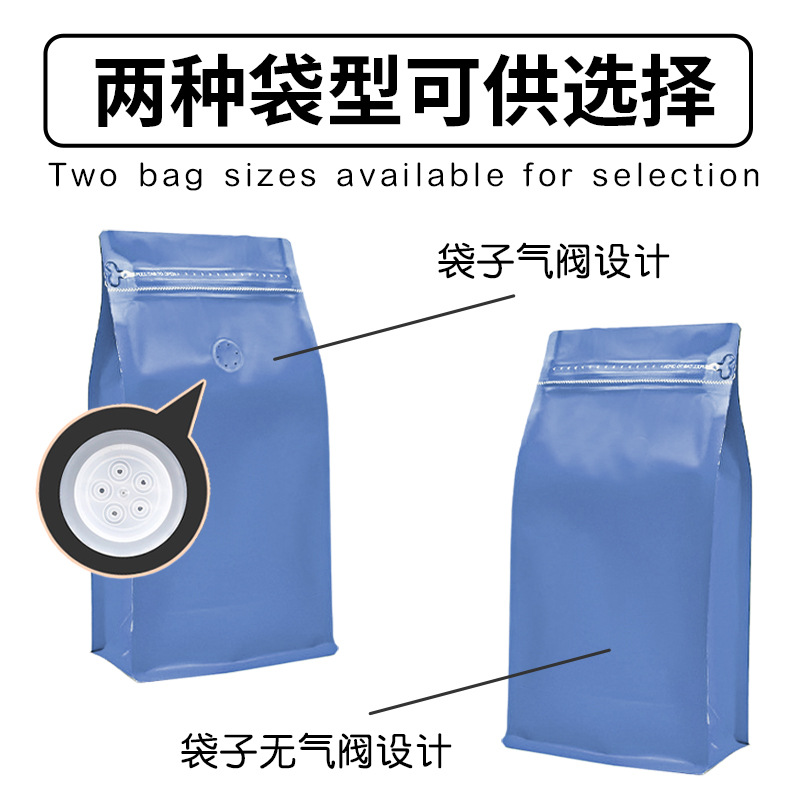 Размер: (с воздушным клапаном) восьмистороннее уплотнение самонесущая Настройка кофейного пакетика; Размер: (без воздушного клапана) восьмистороннее уплотнение самонесущий кофейный мешок по индивидуальному заказу