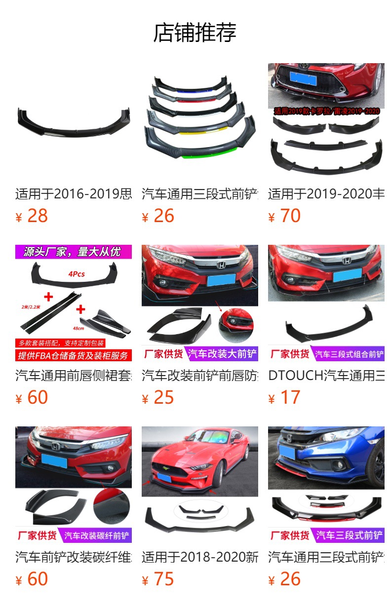 汽车通用四段式前唇赛道款四段式可调节前铲平角双层四段前唇下巴