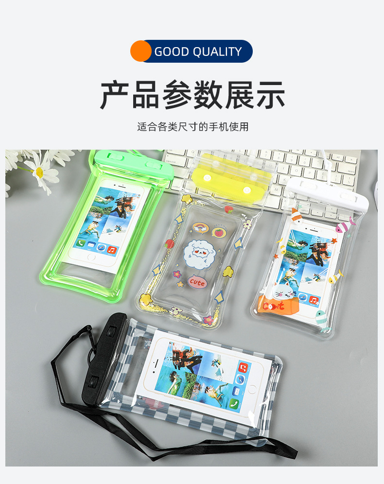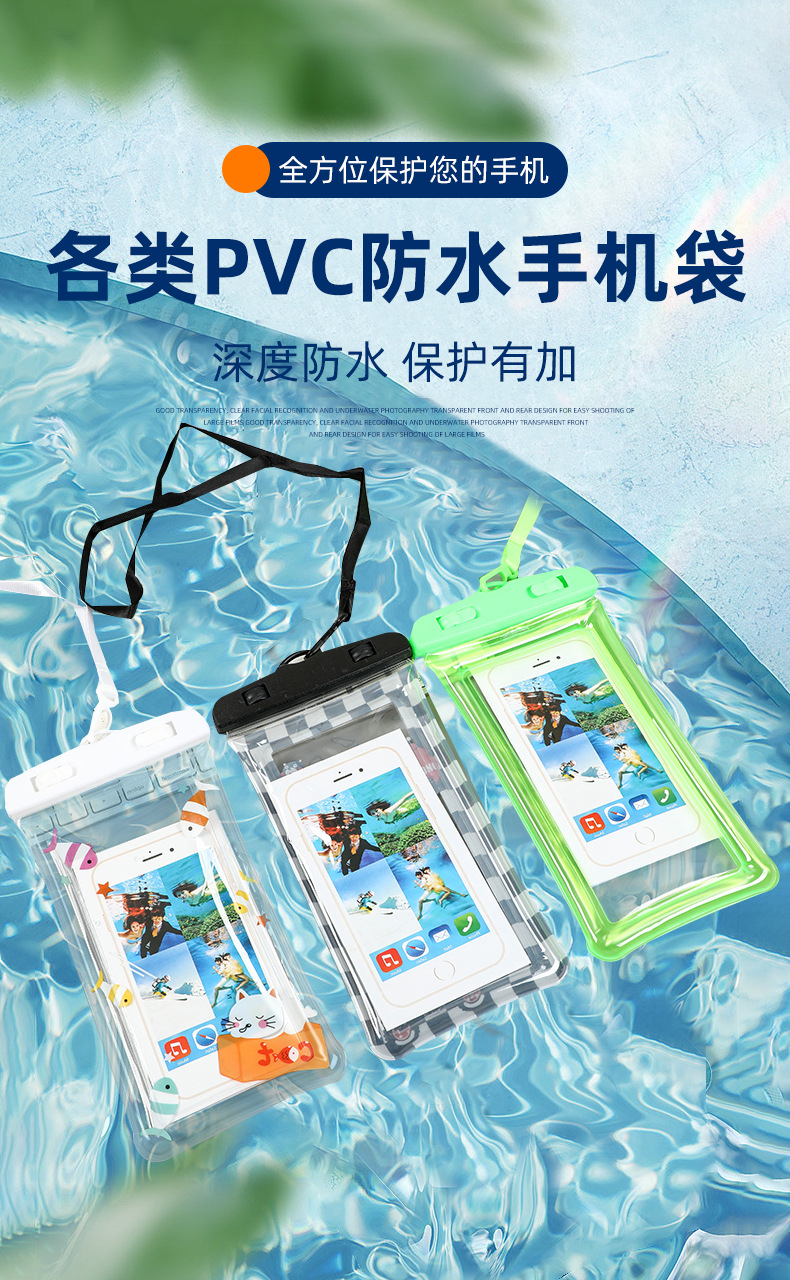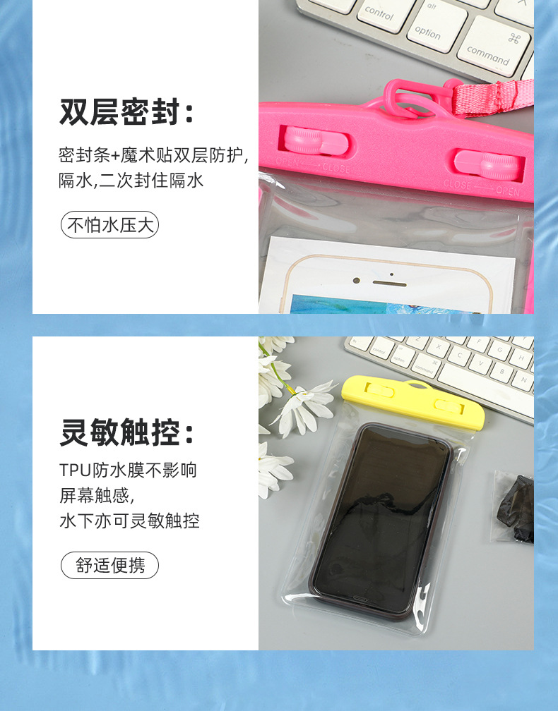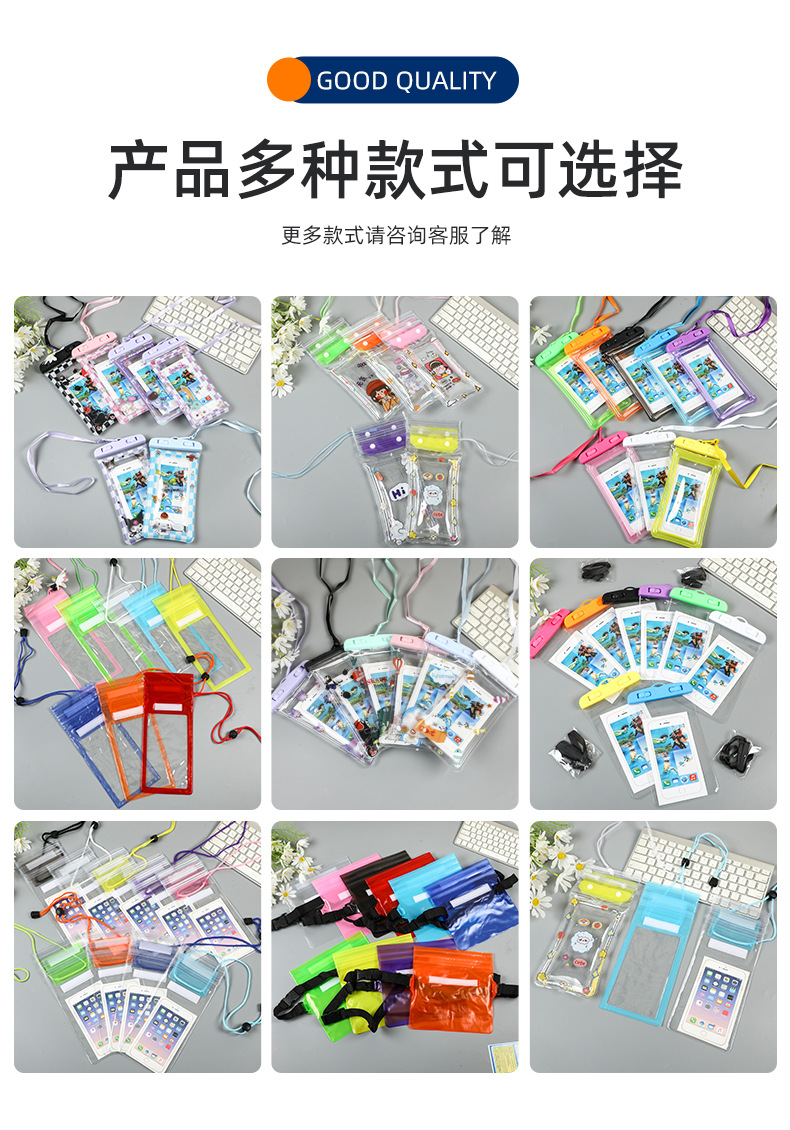 Водонепроницаемая сумка для мобильного телефона с ремешком на шею, совместимая с сенсорным экраном, разноцветная, с застежкой на липучке, трехслойная защита из ПВХ, водонепроницаемая и пыленепроницаемая сумка для использования на открытом воздухе.