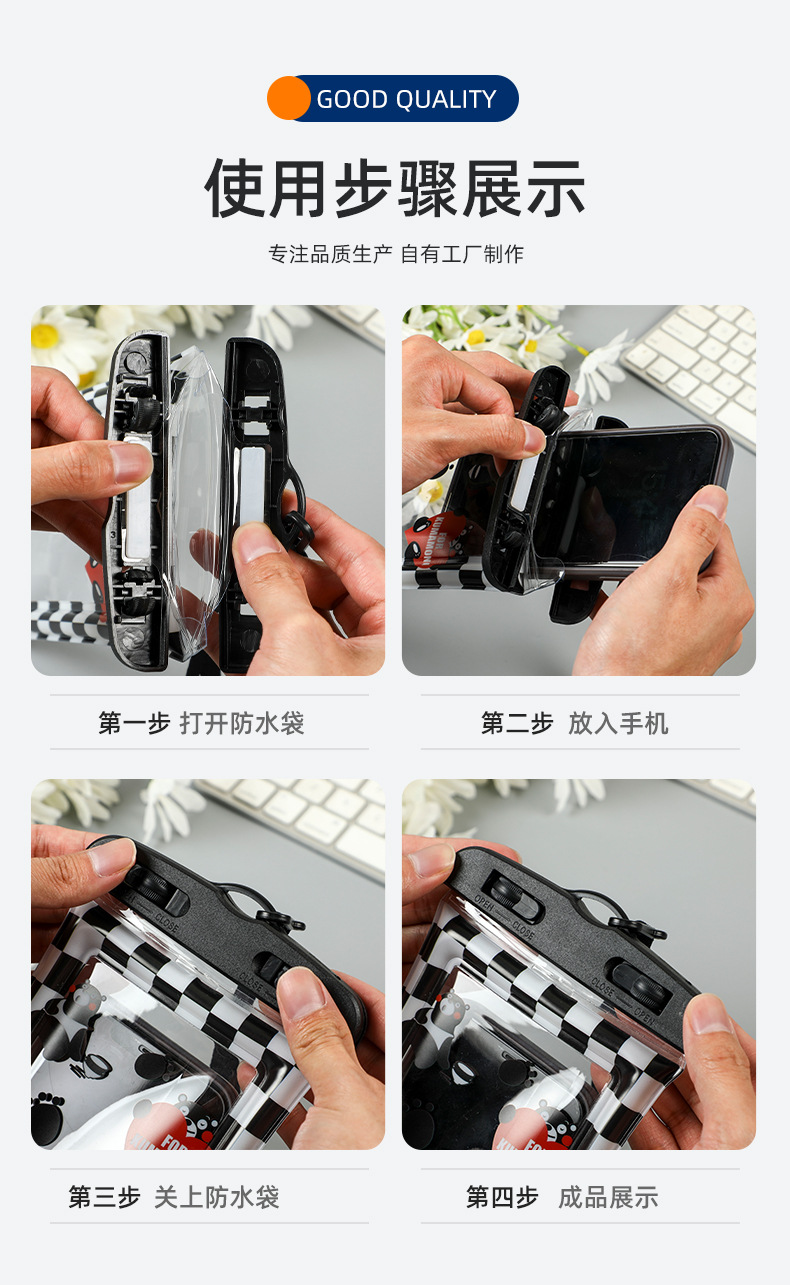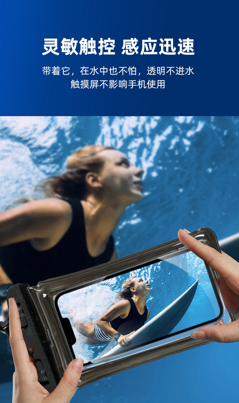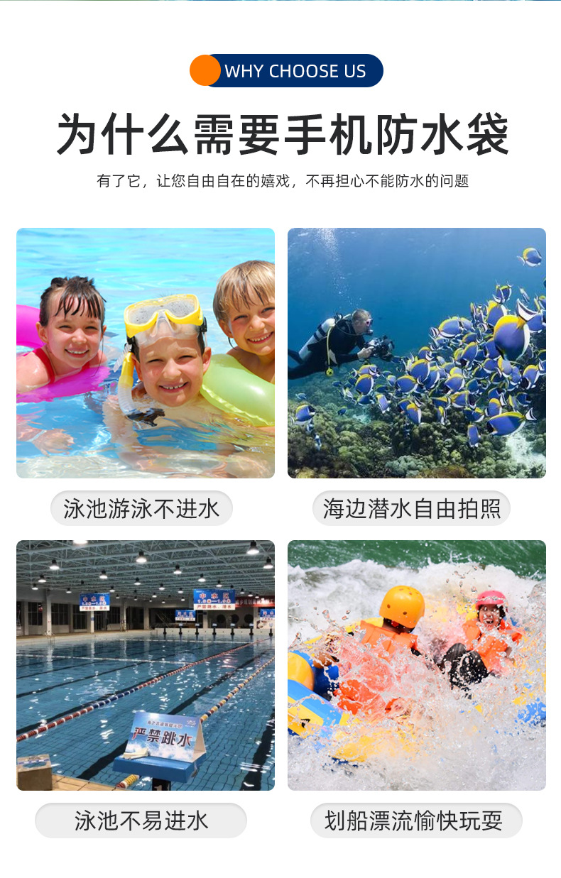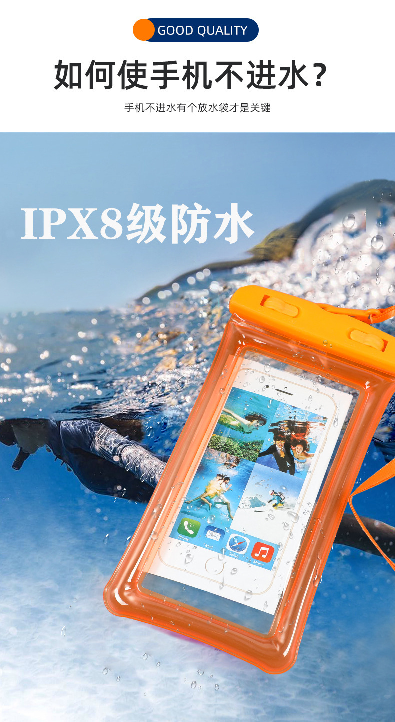 Водонепроницаемая сумка для мобильного телефона с ремешком на шею, совместимая с сенсорным экраном, разноцветная, с застежкой на липучке, трехслойная защита из ПВХ, водонепроницаемая и пыленепроницаемая сумка для использования на открытом воздухе.