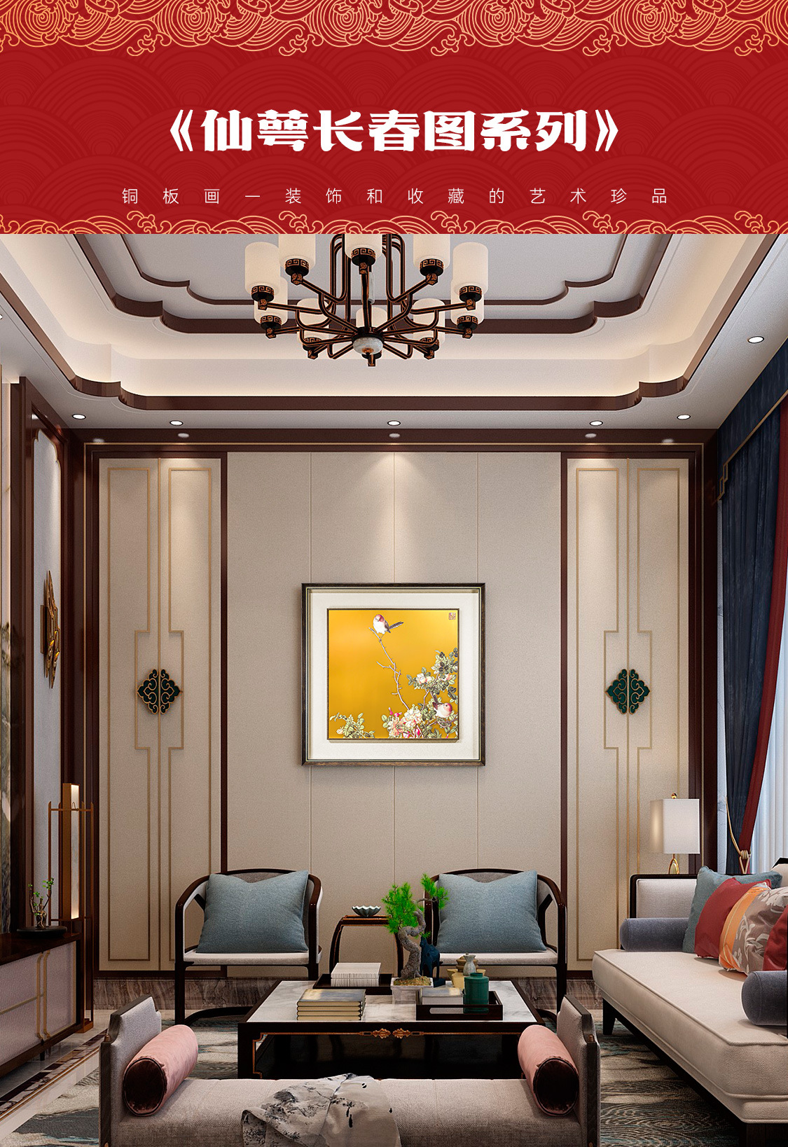 Прямые продажи с фабрики Новая китайская декоративная живопись Гостиная Кабинет чайная комната Прихожая подвесная картина "Xianzhang Changchun картинка" роспись медной пластины