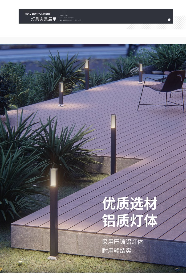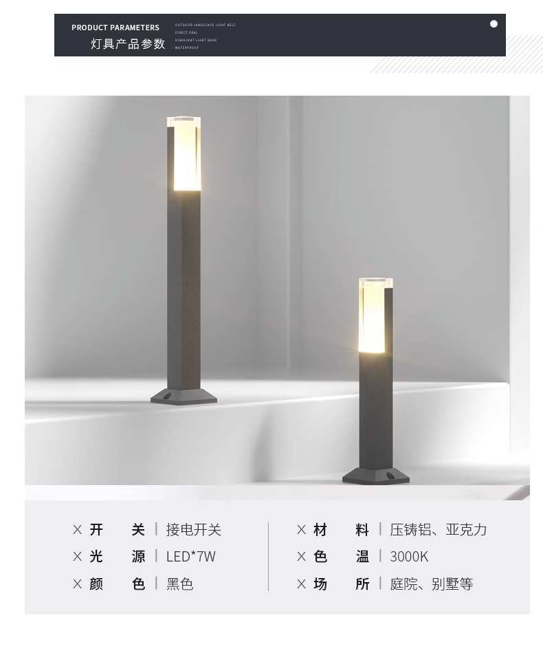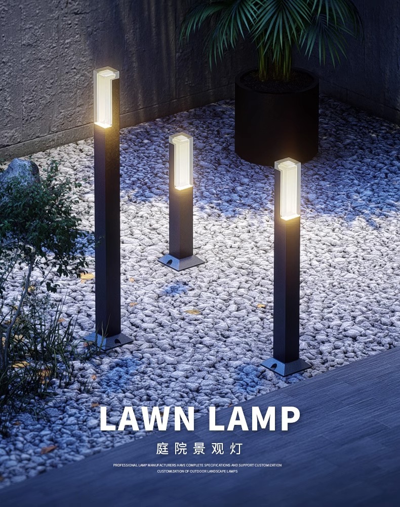 Квадратная простая акриловая лампа для лужайки, садовая вилла, общественный парк, Школьное освещение, водонепроницаемая лампа сада