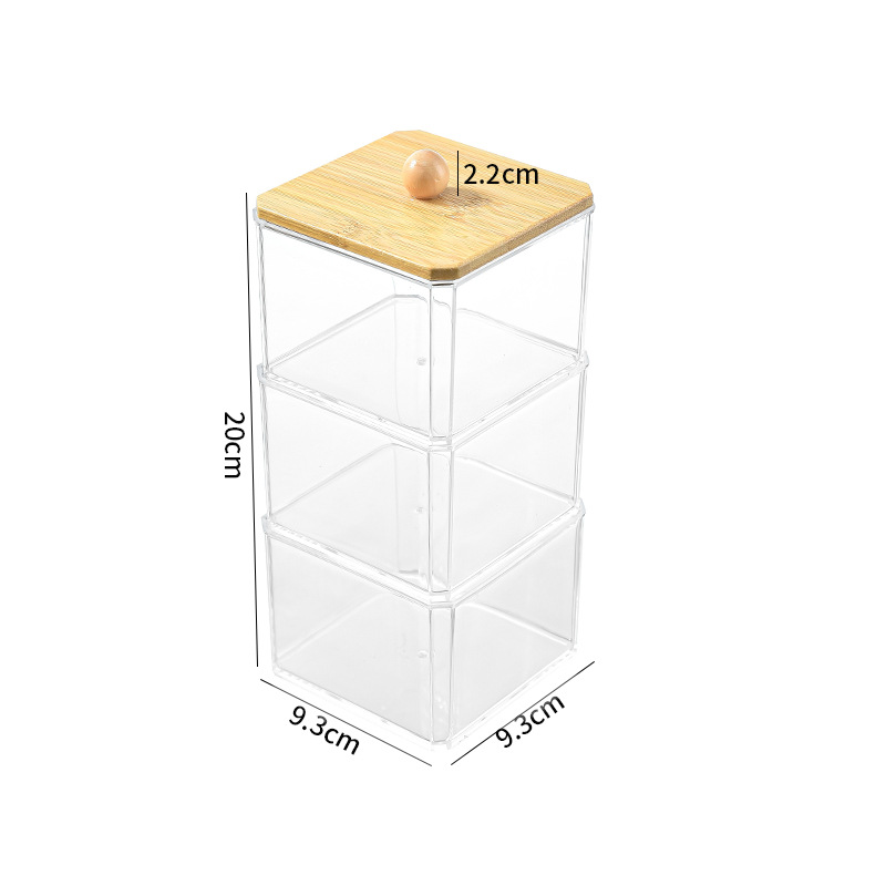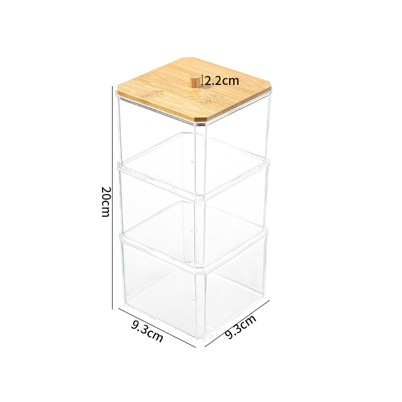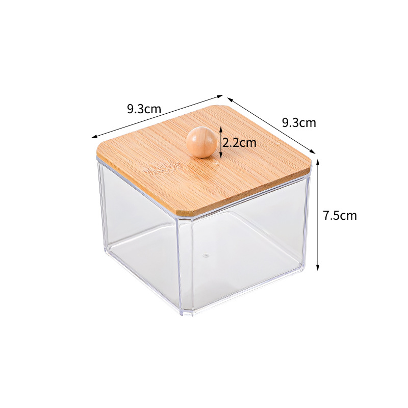 Коробка для хранения косметических ватных тампонов Штабелируемая акриловая квадратная Косметическая хлопковая Пылезащитная шкатулка с крышкой PS высокая прозрачная