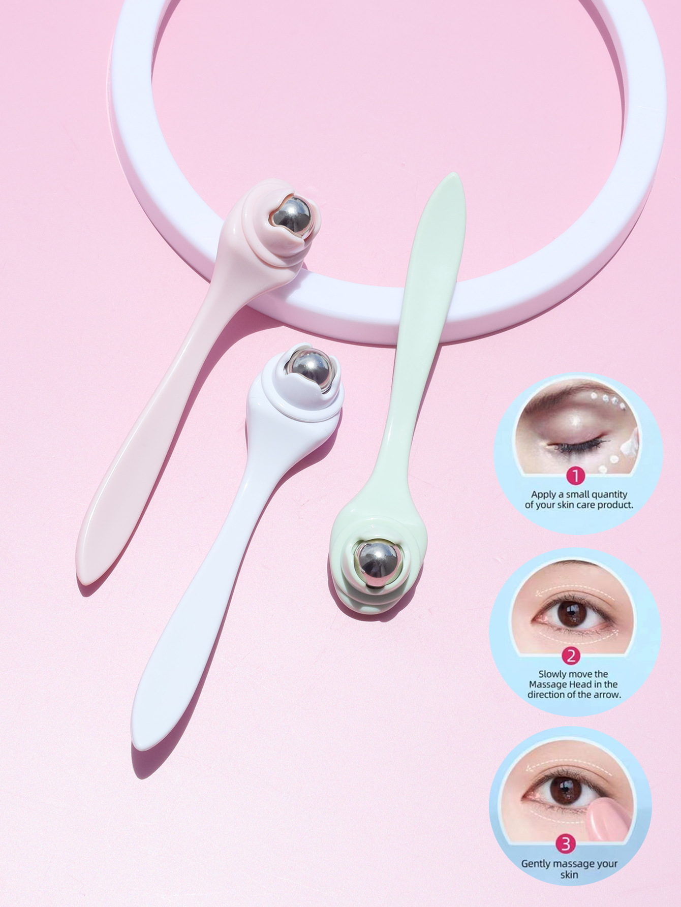Крем для глаз с направляющей стальной шарик для глаз, нанесение на глаз, инструмент для красоты, темные круги, металлический ролик, массажный крем для глаз, палка