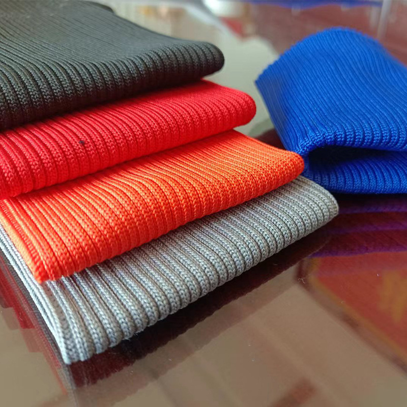 Перчатки с бесшовными манжетами, ребристые цилиндрические манжеты из полиэстера, трикотажная ребристая ткань для одежды, ткань для подола одежды.