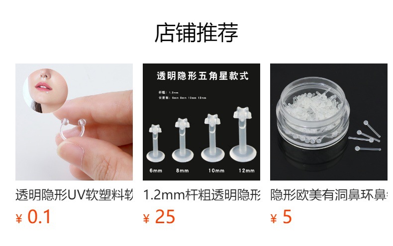 透明UV软亚克力超软塑料软隐形长杆唇钉舌钉鼻钉眉钉脐钉脐环耳钉