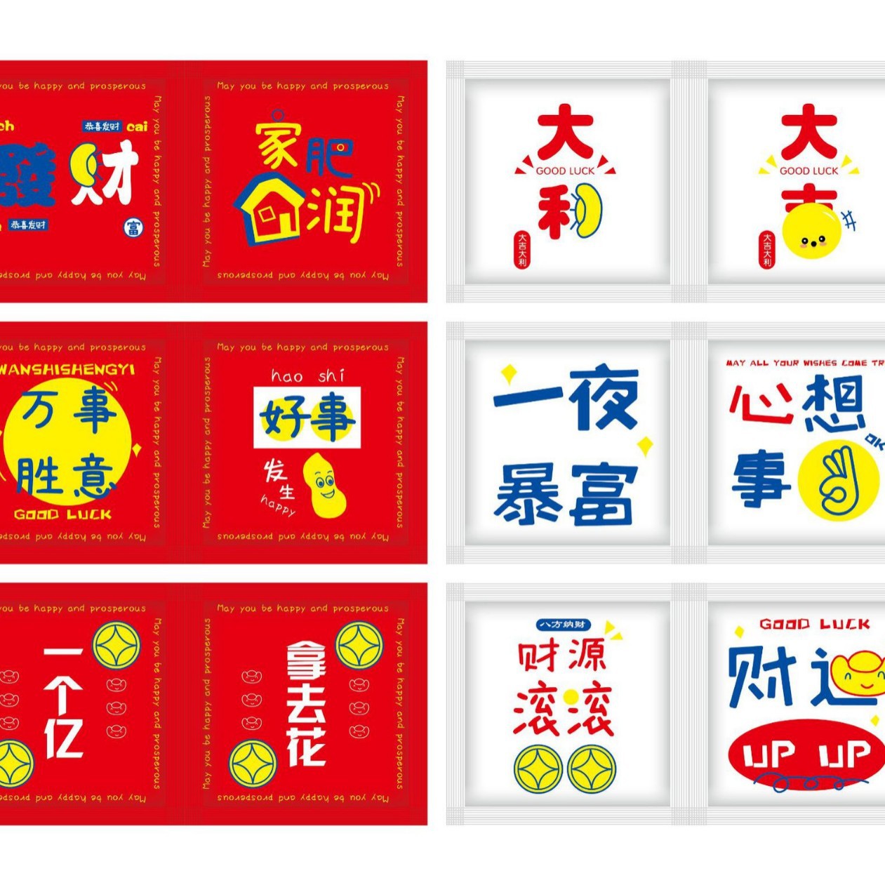 Квадрат микс; Квадратный стиль; Квадратные слова любви; Площадь сухой рис люди; Квадратная маленькая Желтая курица; Квадратный стиль утки удачи; Квадратный вдохновляющий стиль; Площадь Рич; Квадратная новая желтая курица; Квадратный красный конверт для денег; Площадь Красный Лобстер; Квадратная пицца; Площадь Патриотическая; Площадь съесть деньги; Значение квадратного цвета; Прямоугольный Микс; Прямоугольный мультфильм; Прямоугольная ешь не жир; Прямоугольный Rich; Лобстер прямоугольный, двух цветов
