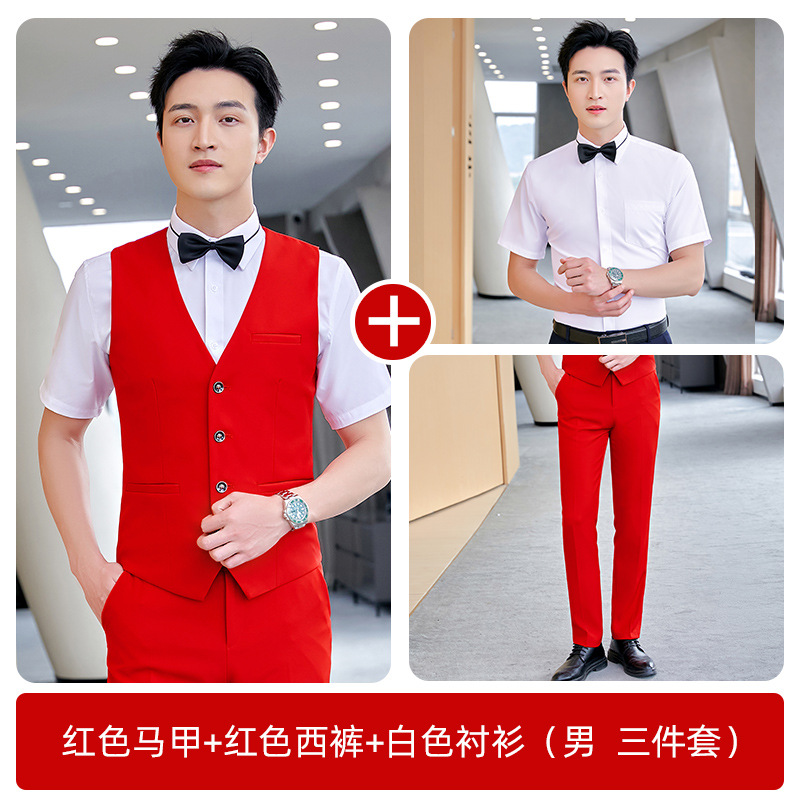Черный жилет (женский); Черный жилет (мужской); Жилет темно-синий (женский); Темно синий жилет (самец); Красный жилет (женский); Красный жилет (кобель); Черный жилет (женский) + брюки; Черный жилет (мужчины) + брюки; Темно-синий жилет (женский) + брюки; Темно-синий жилет (мужчины) + брюки; Красный жилет (женский) + брюки; Красный жилет (мужчины) + брюки; Черный жилет (женский) + брюки + белая рубашка с короткими рукавами; Черный жилет (мужчины) + брюки + белая рубашка с коротким рукавом; Темно-синий жилет (женский) + брюки + белая рубашка с коротким рукавом; Темно-синий жилет (мужчины) + брюки + белая рубашка с коротким рукавом; Красный жилет (женский) + брюки + белая рубашка с короткими рукавами; Красный жилет (мужчины) + брюки + белая рубашка с короткими рукавами
