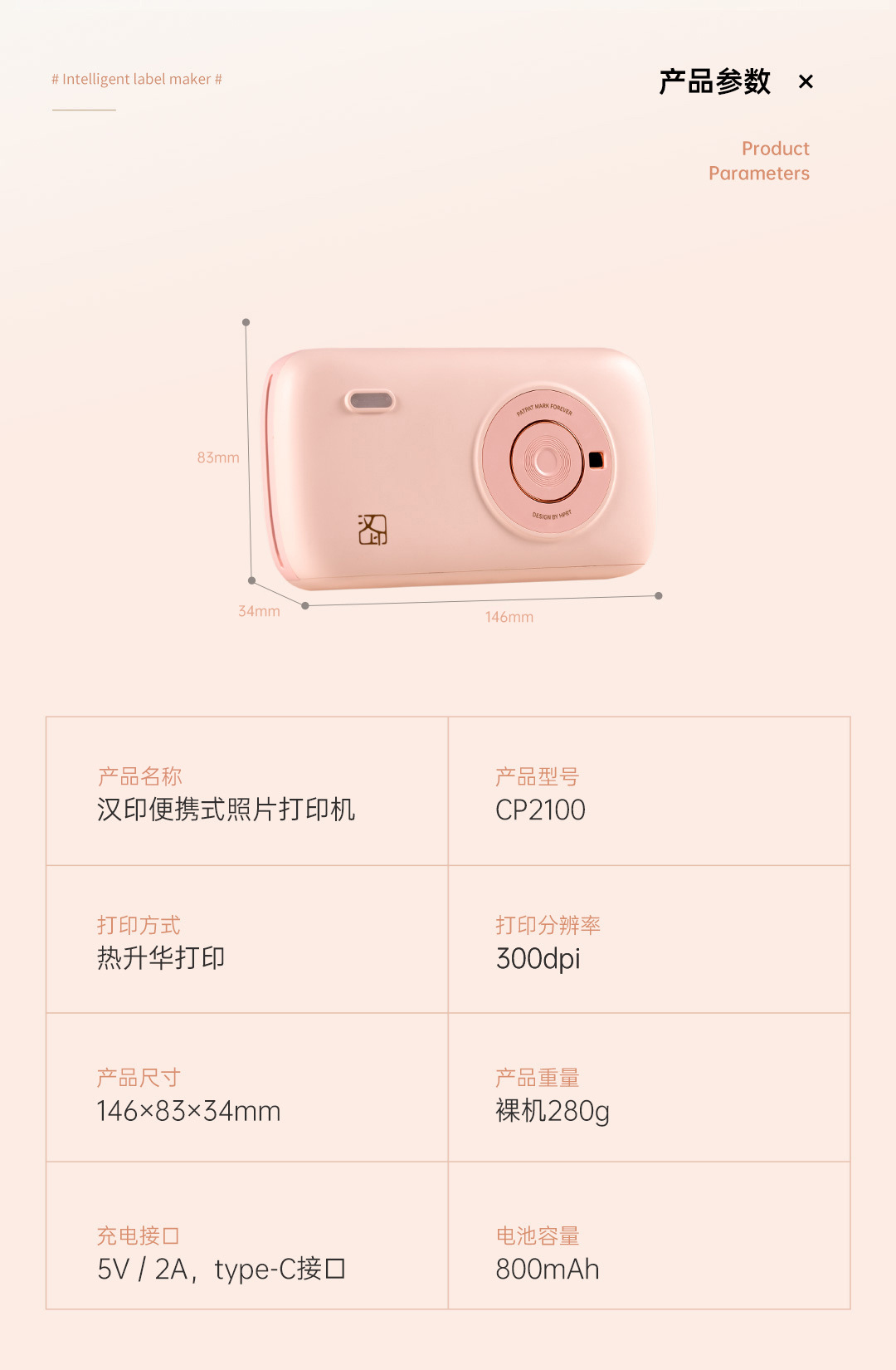 Hanyin CP2100 Polaroid фотопринтер камера портативный мобильный телефон фото стиральная машина портативный цветной
