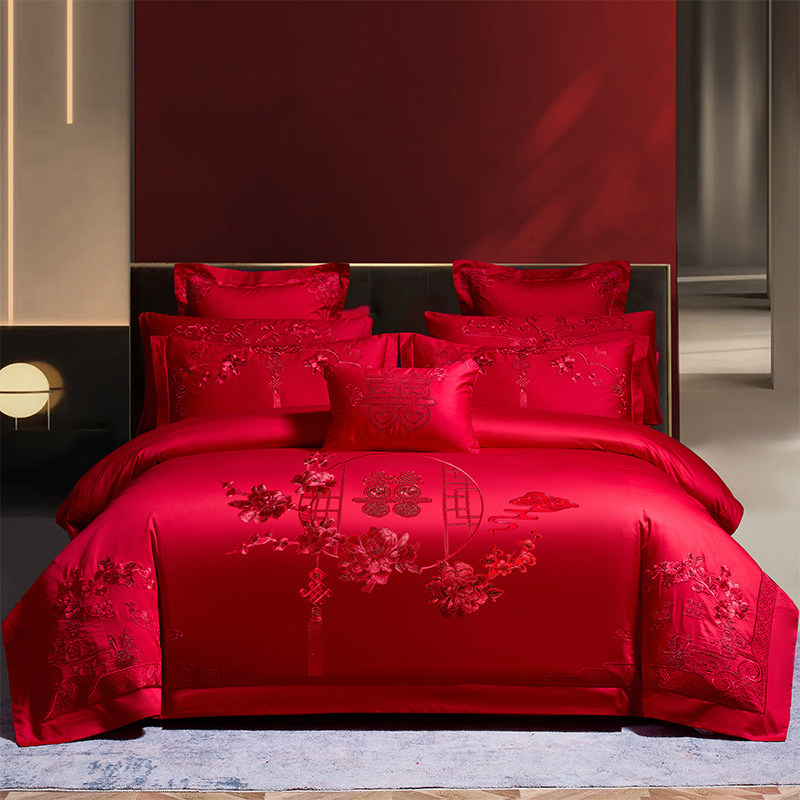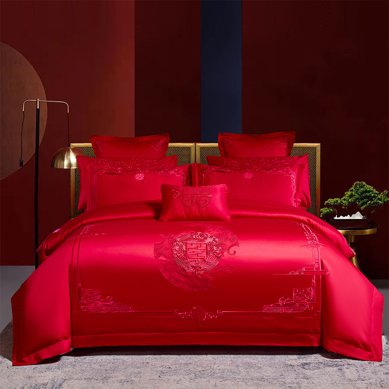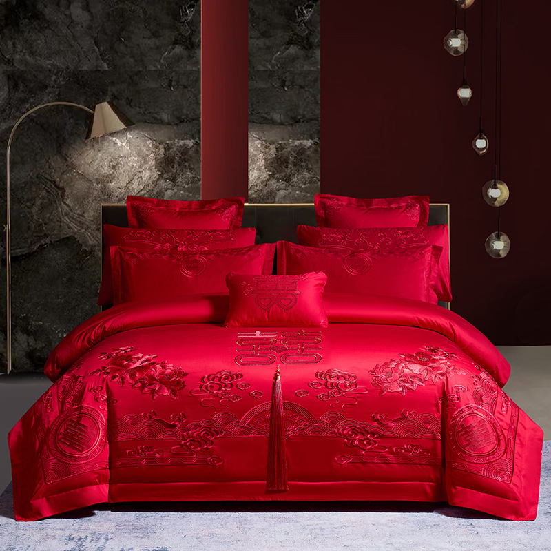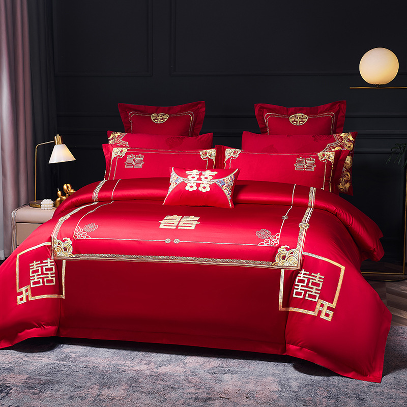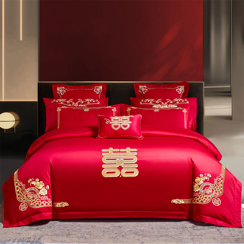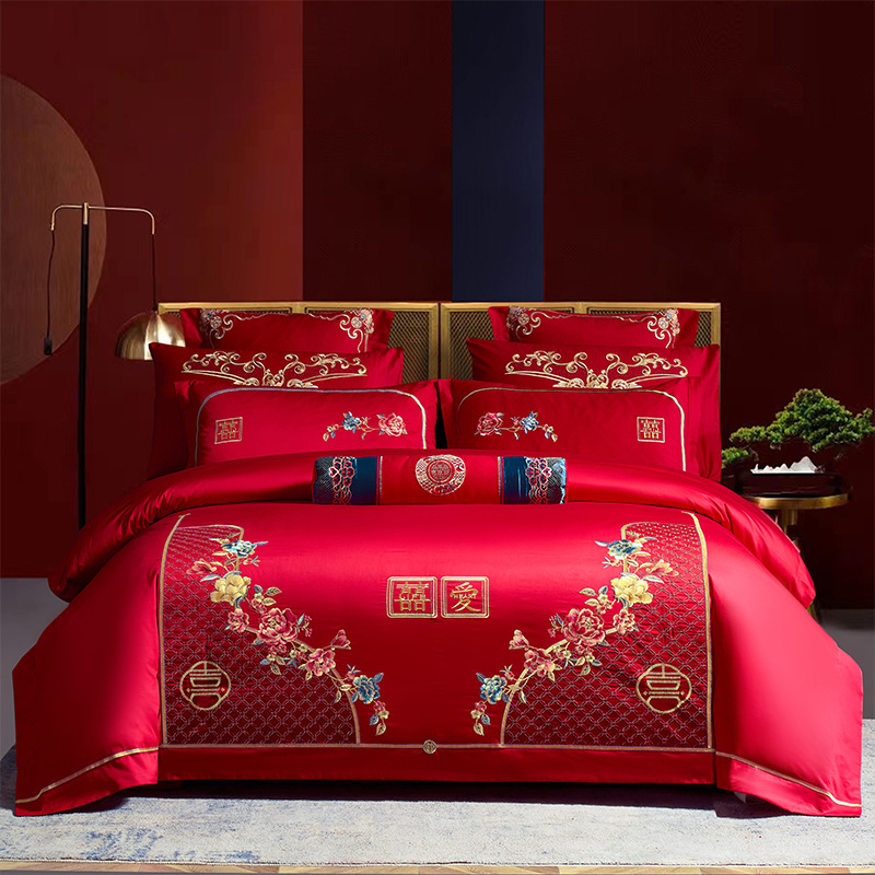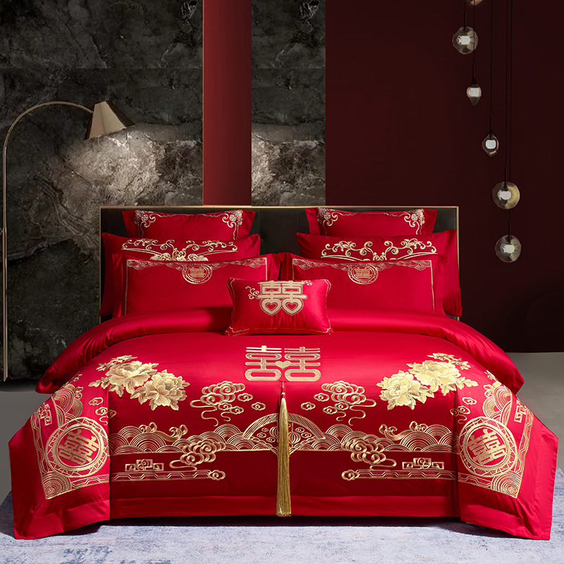 Синьцзянский длинноволокнистый хлопковый Свадебный комплект из четырех предметов, большой красный вышитый чистый хлопок, вышитое пододеяльник, простыня, свадебное постельное белье