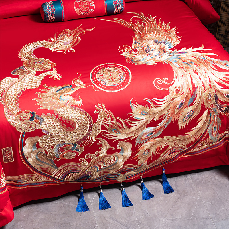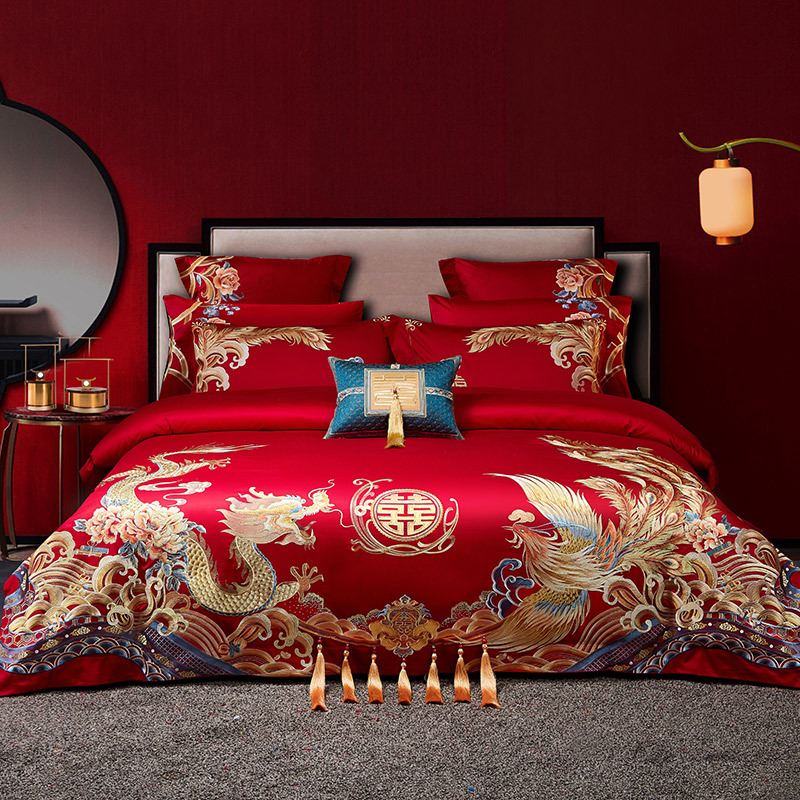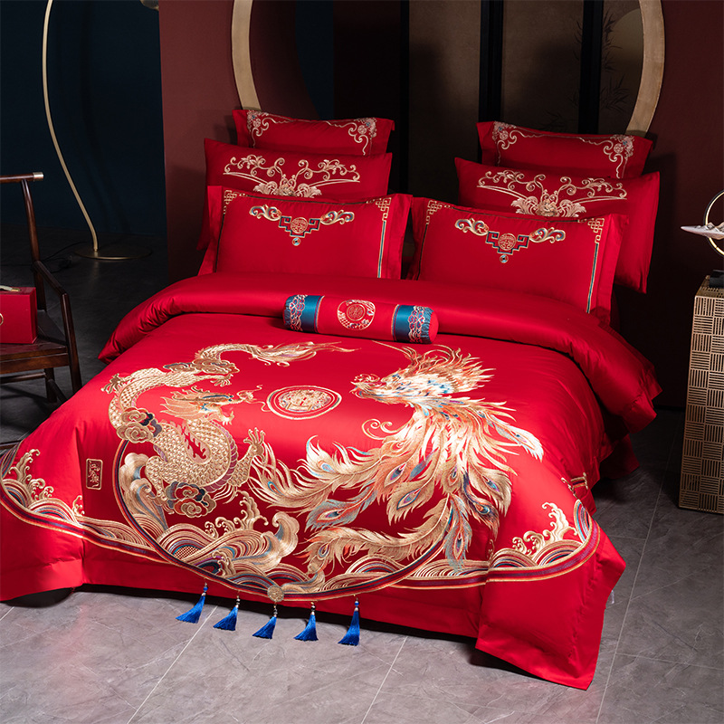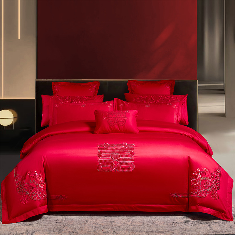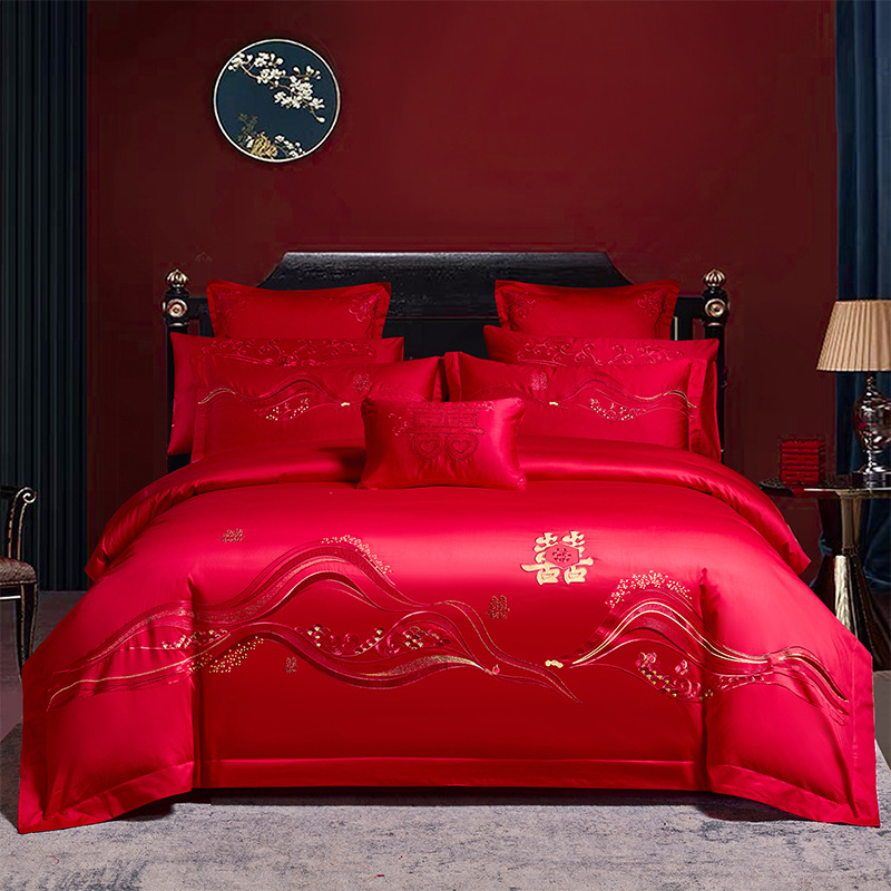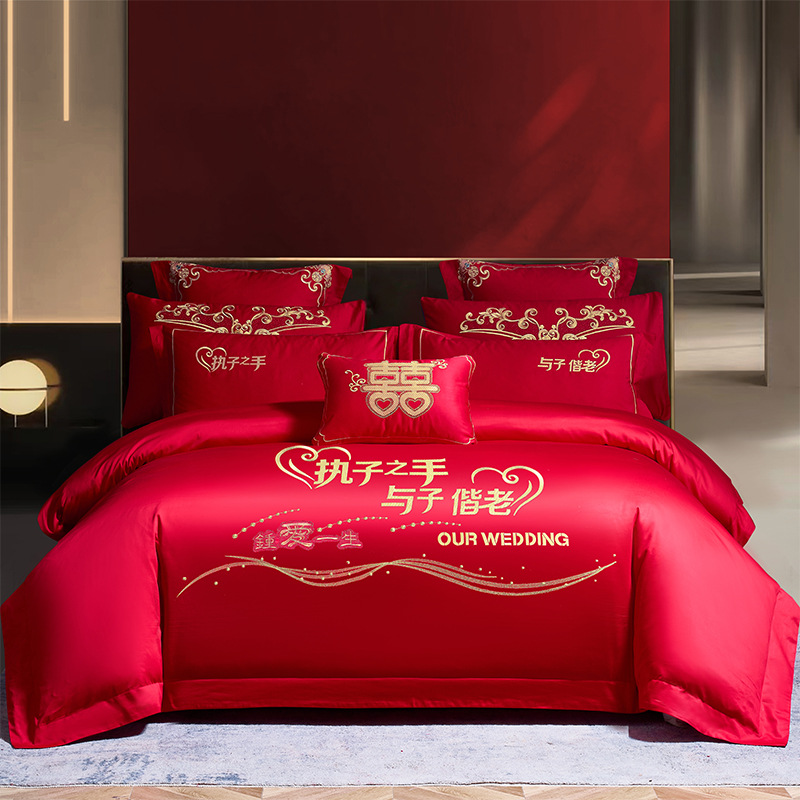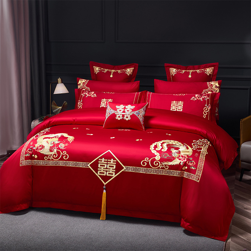 Синьцзянский длинноволокнистый хлопковый Свадебный комплект из четырех предметов, большой красный вышитый чистый хлопок, вышитое пододеяльник, простыня, свадебное постельное белье