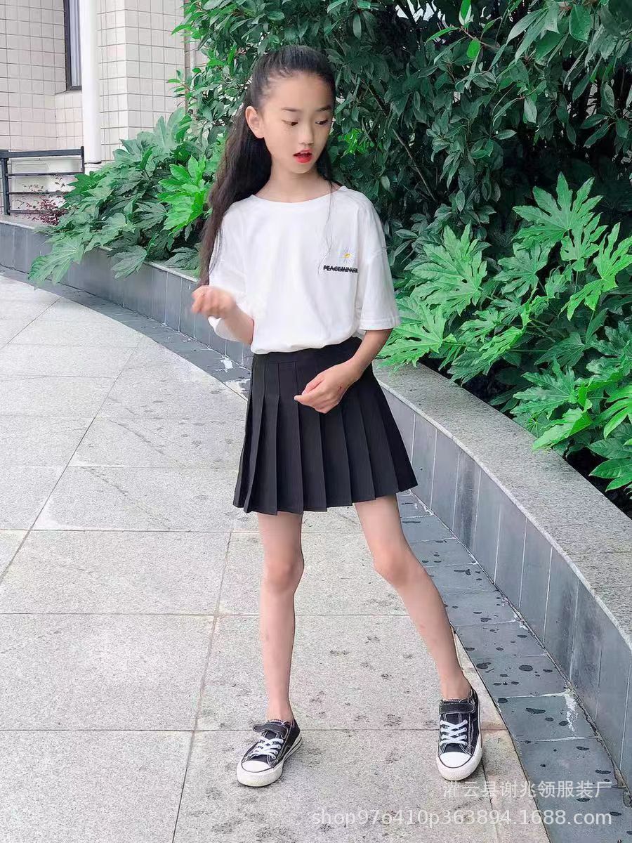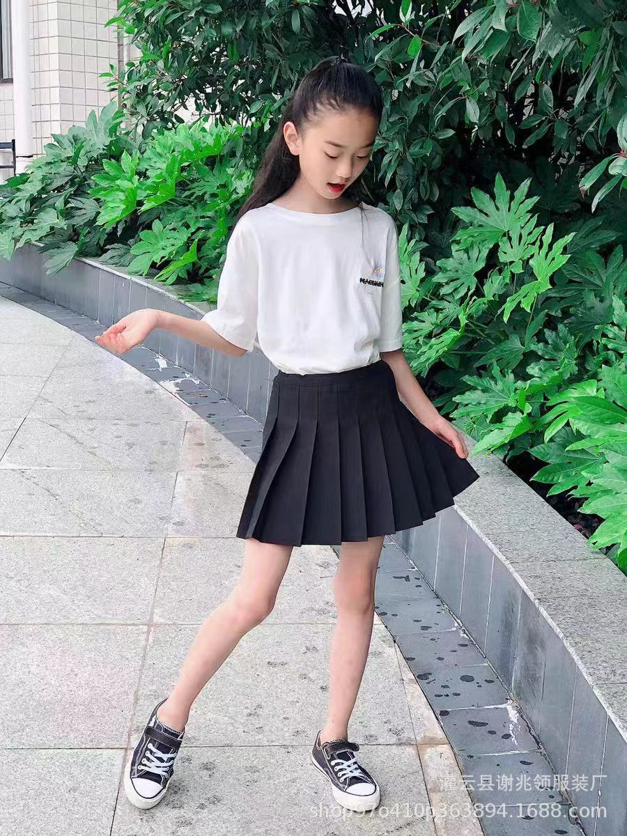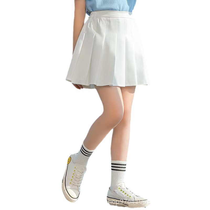 Белая плиссированная юбка для девочек, летняя юбка-трапеция с высокой талией, брюки, детская юбка в Корейском стиле в студенческом стиле, эластичная талия для девочек