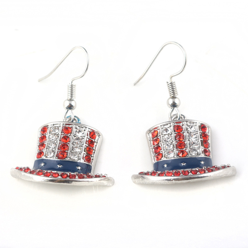 Европейский и американский трансграничный День независимости США флаг шляпа тапочки любовь серьги красный, белый и синий полосатый флаг серьги оптом
