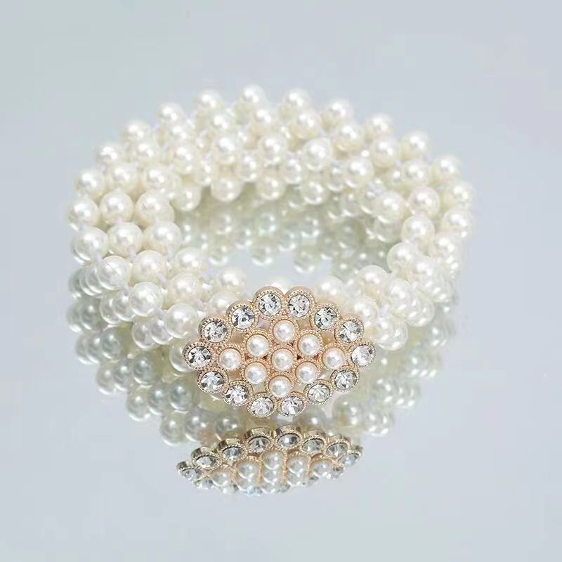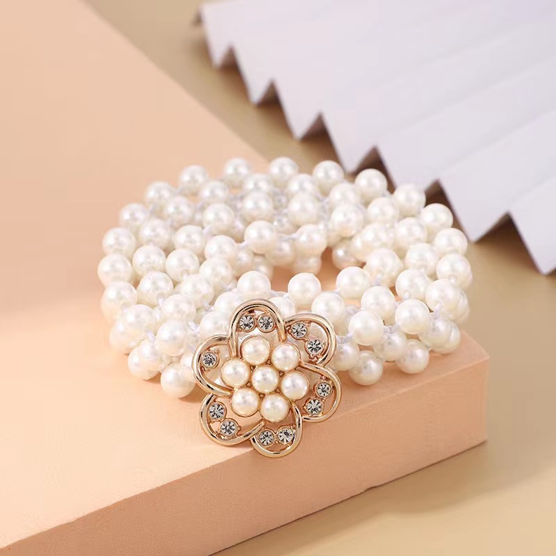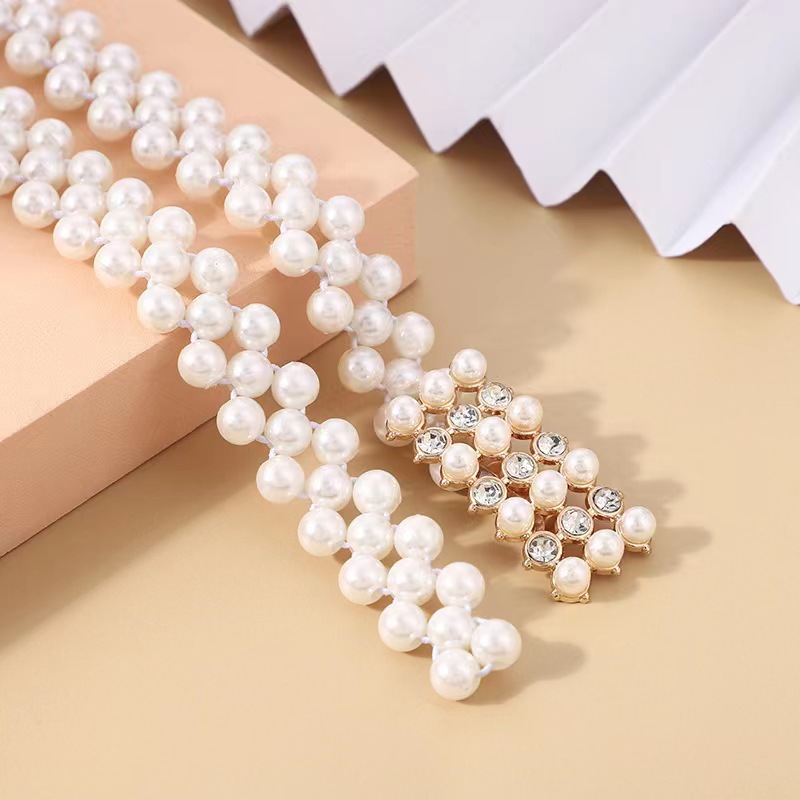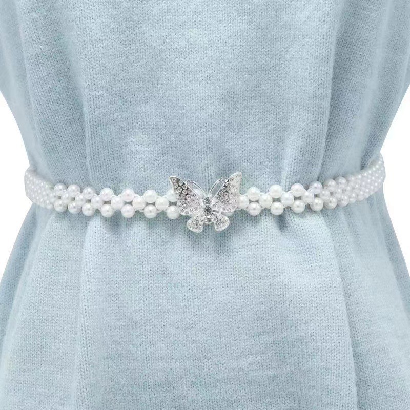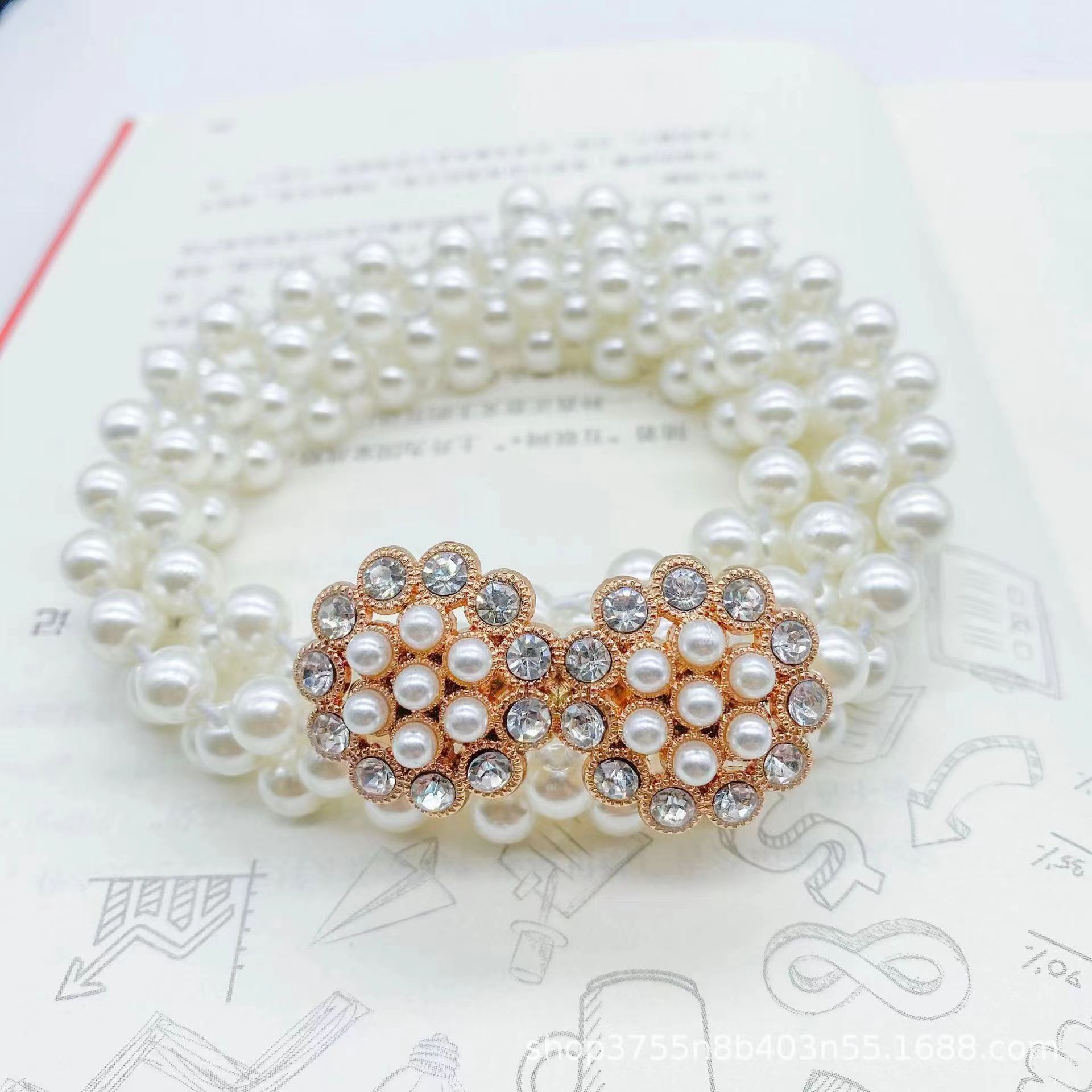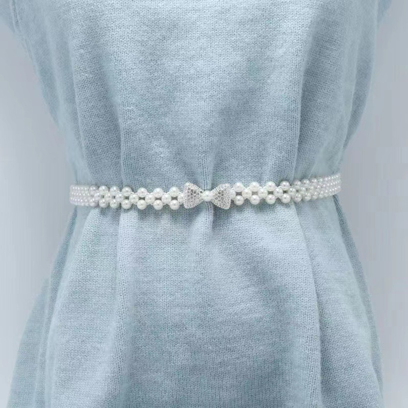 Модный жемчужный тонкий пояс с цепочкой на талию в Корейском стиле, женское декоративное платье, универсальный эластичный маленький пояс со стразами для женщин