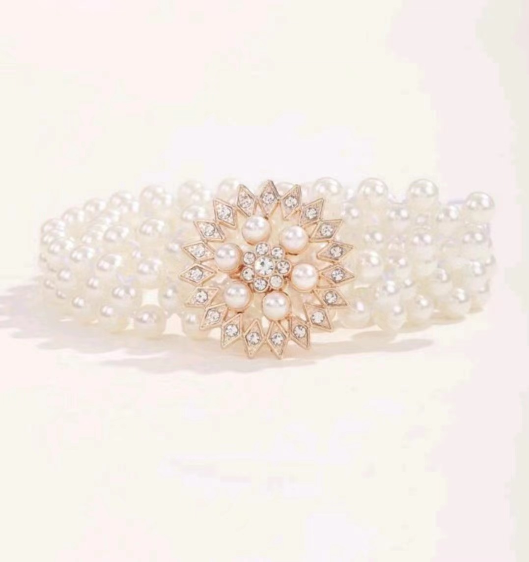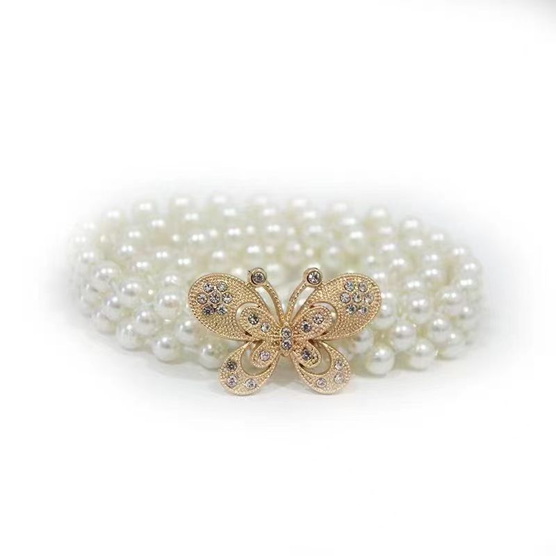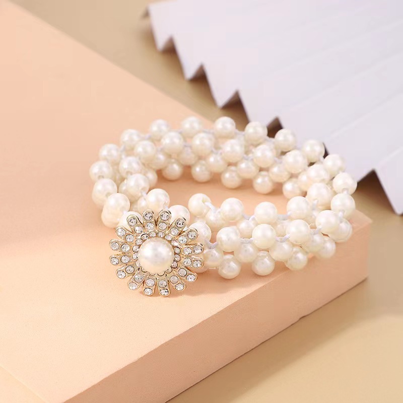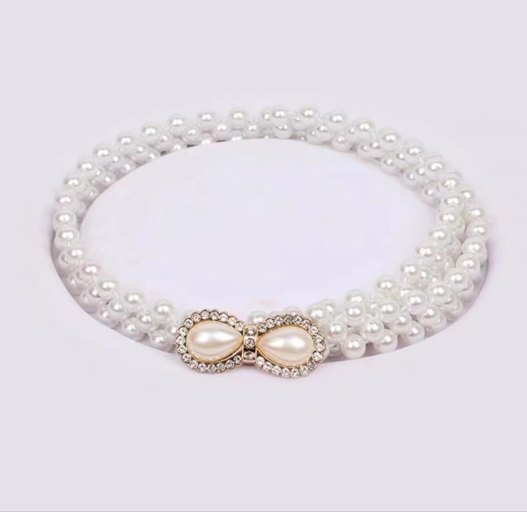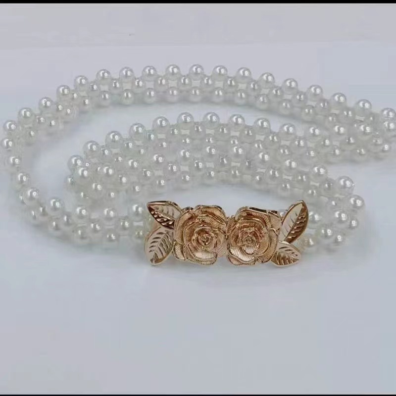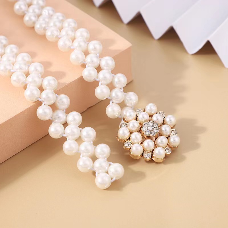 Модный жемчужный тонкий пояс с цепочкой на талию в Корейском стиле, женское декоративное платье, универсальный эластичный маленький пояс со стразами для женщин