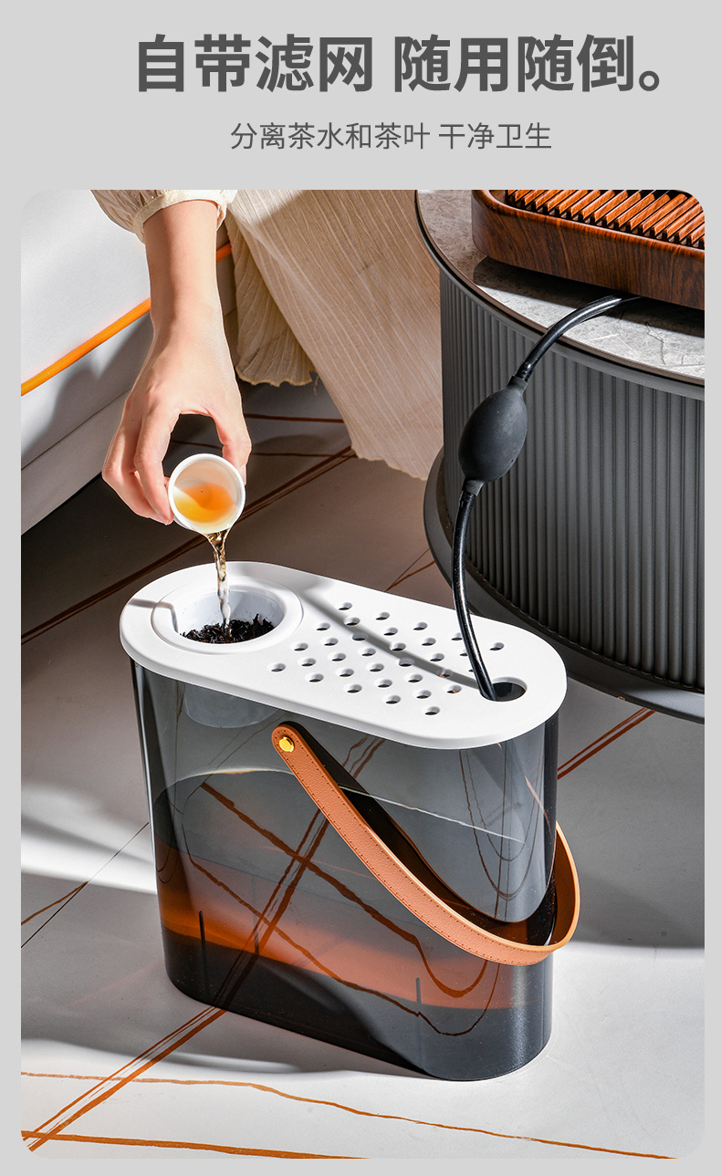 Ведро отхода шлака чая офиса овальное портативное сухое и влажное ведро чая разъединения пластиковое кухонное сливное фильтрующее мусор