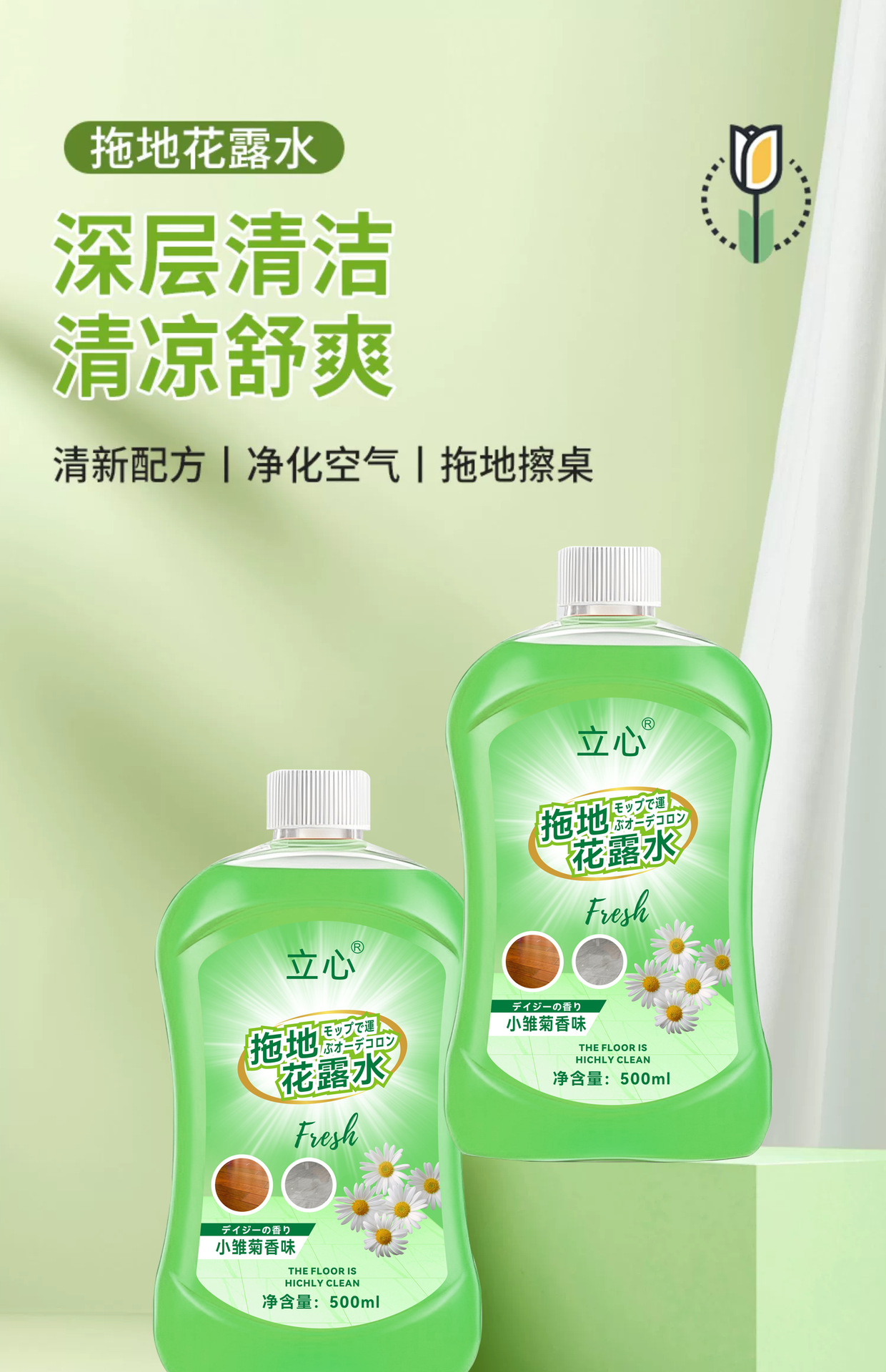 Многофункциональное средство для мытья полов Lixin, 500 мл, с ароматом свежей хризантемы, для удаления запахов, для домашнего использования