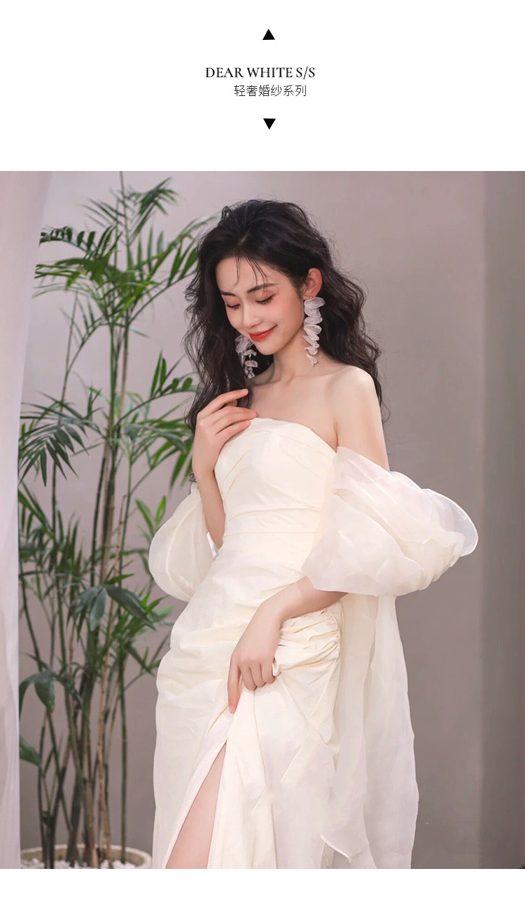Без Бретелек Легкое Свадебное Платье Невесты Простой Длинный Французский Атласное Платье Супер Фея Мори Стиль Утренний Халат Платье Добро пожаловать Свадебное Платье