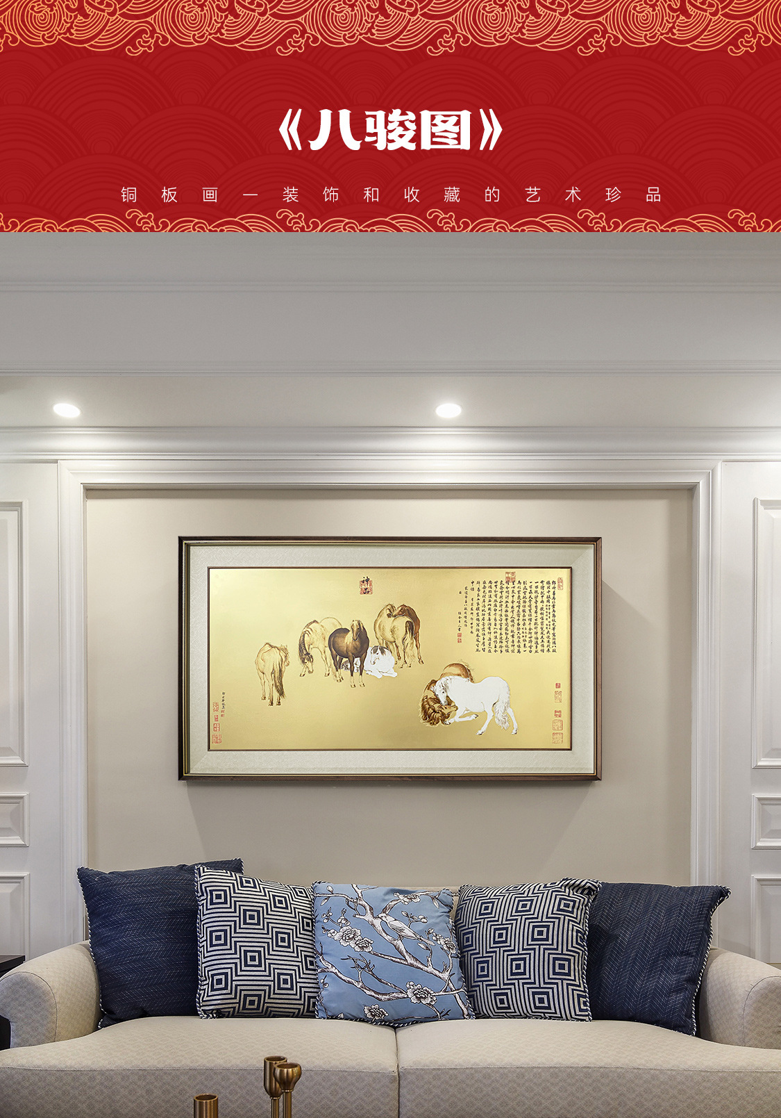 Прямая поставка с фабрики Новая китайская декоративная живопись Гостиная Кабинет Прихожая диван фон висит живопись восемь juntu медная пластина живопись