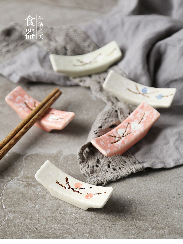 Японская стойка для палочек для еды Креативная простая подглазурная Цветная Керамическая стойка Мини-держатель для ложек Держатель для палочек для еды Стойка для цветения сливы Оптовая продажа