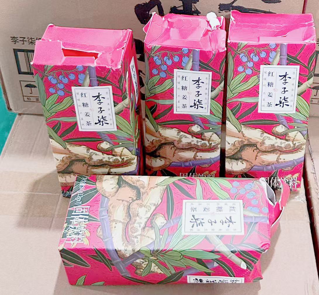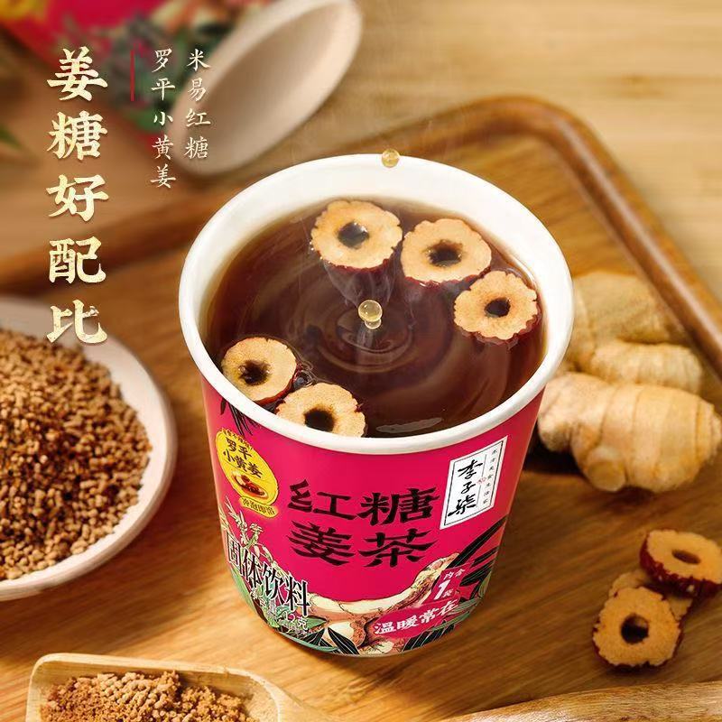 Ли Цзы Ци [Чай с коричневым сахаром и имбирем] 84 г; Внешняя коробка Ли Цзыци [Имбирный чай с коричневым сахаром] деформирована; Чай с коричневым сахаром и имбирем, 12 г [чашка]; Ли Цзы Ци Крахмал из корня лотоса [300 г]