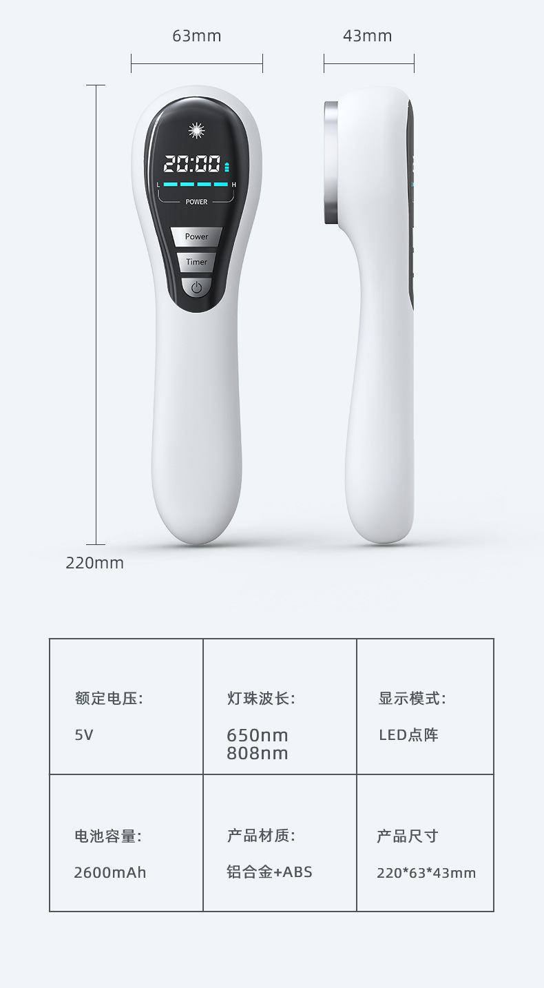 Оптовая продажа от фабрики Yingdan: полупроводниковый прибор для красного света, инфракрасный физиотерапевтический прибор, лампа 650 нм + 808 нм, перезаряжаемый физиотерапевтический прибор.