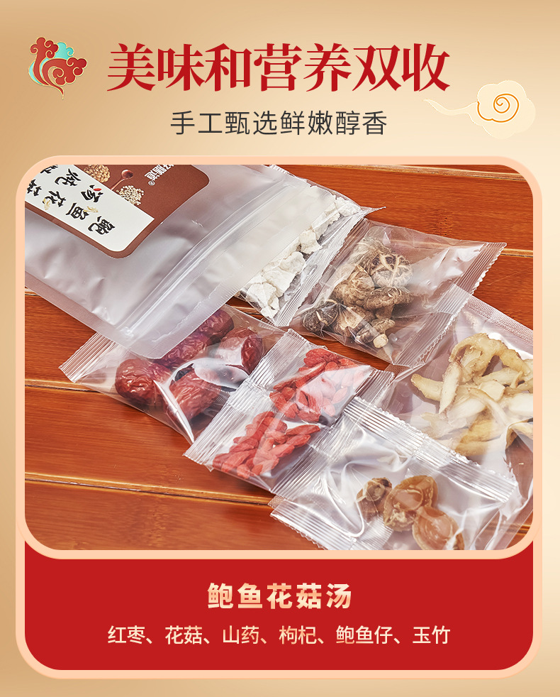 Еженедельная упаковка детского супа; Солодовый суп боярышника 70г; 50 г морского и бактериального супа; Apple Sydney Four God Soup 50г; Суп из пестицидов лотоса 98г; Hericium fig yam суп 78г; Курица с супом золотистого боярышника 75г; Новый суп Четыре Бога 98г; Суп-пакет-гриб Морель 30г; 30г шесть грибных супов; Суп Bazhen Mushroom 30г; Грибной суп женьшеня 30г; Грибной суп морского ушка 30г; 30г грибного супа; Масук грибные супные пельмени 80г; Красочные грибные суповые пельмени 65г; Пятипальцевой суп персика и породы 50г; Пория, Хуашианский и ячменный суп 45г; Суповые булочки Four Seasons Qing Liang 76 г; 100 г черного сливового супа; Сиднее сушеная фигурка Лилии, 70г; Пория Коко, кудзу и ячменный суп 105г; Суп Пуэрия лопата и поропия 105г; Бамбуковая трость Mou Root Sydney Soup 130г; Прия, Хуашианский и ячменный суп 120г; Суп миндальной лилии 75г; Пятипальцевой суп персика и породы 115г; 50 г рутинного корневого супа; Суп-пакет из говядины и баранины 85г; Кодонопсис, астрагалу, нефрит и бамбуковый суп 50г; Пять красных супов 115г; Нефрит, бамбук, длинный, красный суп с датой 70г; Миндальный инжир и нефритовый бамбуковый суп 71г; Cordyceps Cordyceps Red Date Longan Soup 78г; Dendrobium Американский женьшень Ганодерма суп 25г; Женьшеневый суп Tenma Party 50г; Ганодерма Пория Суп 83г; Суп Ji Matsutake Gorgon и Longan 63г; Суп шелковицы, пория и лилии 75г; Чернила рыба черная фасоль грибной суп 65г; Тигровое молоко-гриб миндальный суп 115г; Желтая эссенция суп черная фасоль орех 75г; Женьшень, Ям, кордицепс и кордицепс Суп 60г; Грибной суп чайного дерева 62г; Сушеная мушля Лилия Бамбуковая суп 66г; Ядро песка красные финики и суп ямс 75г; Суп-гриб с крылатыми волчьей ягодицы 79г; tə, красные финики, хризлис и кордицепс суп 65г; Мясо улитки, суп из костей волчьего крыла 75г; Нефритовый бамбуковый грибной суп Abalone 68г; Морской грибной грибной суп 65г; yarat, нефрит, бамбук и суп из семян лотоса 64г; tao czerwona data крыло костяной суп 68г; Сушеный миндалесовый суп 83г; Суп глоду Maotai Root Wolfberry 99г; Мугеновая сахарная трость и суп снежная груша 87г; Суп грибок грецкий орех черный боб 85г; Пятипальцевый персиковый горуон и кукс семян 100 г; Желтая эссенция, суп Longan и Red Date 70г; Корддицепс цветок волчьей и лилии суп 80г; Суп из нефрита, бамбука, ямина и волчницы 91г; Суп Poria Cocos, ячмень и семена лотоса 95г; Чайное дерево грибной суп 76г; Желтые цветочные овощи кудзу и суп из семян лотоса 78г; Капуста сушеный нефритовый бамбуковый инжирный суп 75г; Кордицепс Цветок Юаньбей Суп 75г; Суп из нефрита, бамбука, лилии и лотоса 76г; Женьшеневый кордицепс Цветочный суп 68,5г; Цветочный суп Hericium, бамбук и кордицепс 59г; Пять бактерий, суп кудзу-грибок 58г; Суп из семян лотоса карпа и арахиса 120г; Пятипальцевый персиковый, длинный, нефрит и бамбуковый суп 69г; Суп громкий улиточный мясной ямс 93г; Гриб ягненка, рога, грибной, грибной суп 94г; Корддицепс цветок рыба резинка суп 81г; Клейкая желтая эссенция Longan суп 88г; Суп Bazhen Mushroom 43г; Рыбная пасть мясо лотоса суп 81г