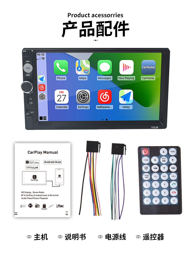Автомобильный MP5-плеер 7inch с USB-подключением, автомобильное радио MP3, Bluetooth, камера заднего вида, HD-экран 7010B
