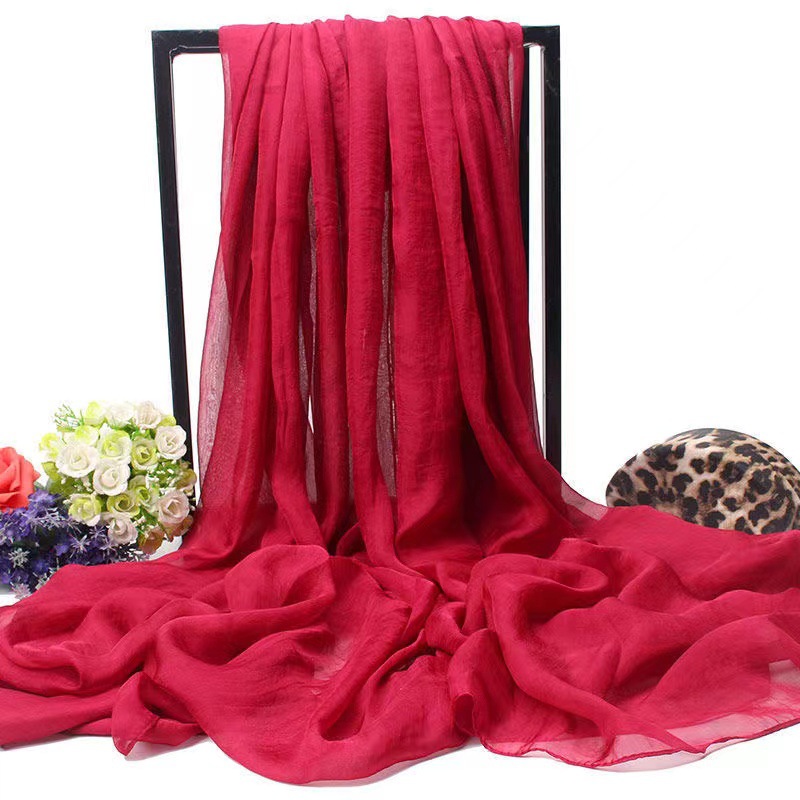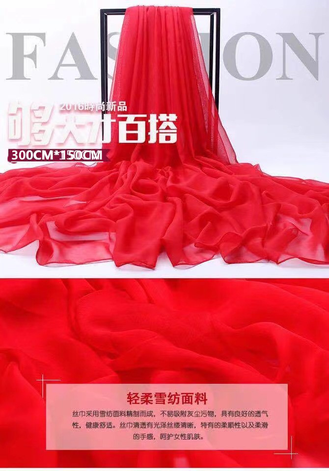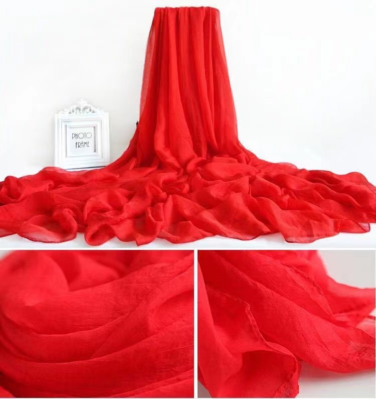 Большой красный большой шифоновый однотонный шелковый шарф Весенне-летний пляжный солнцезащитный шарф Универсальный большой платок Шарф для танцевальной вечеринки