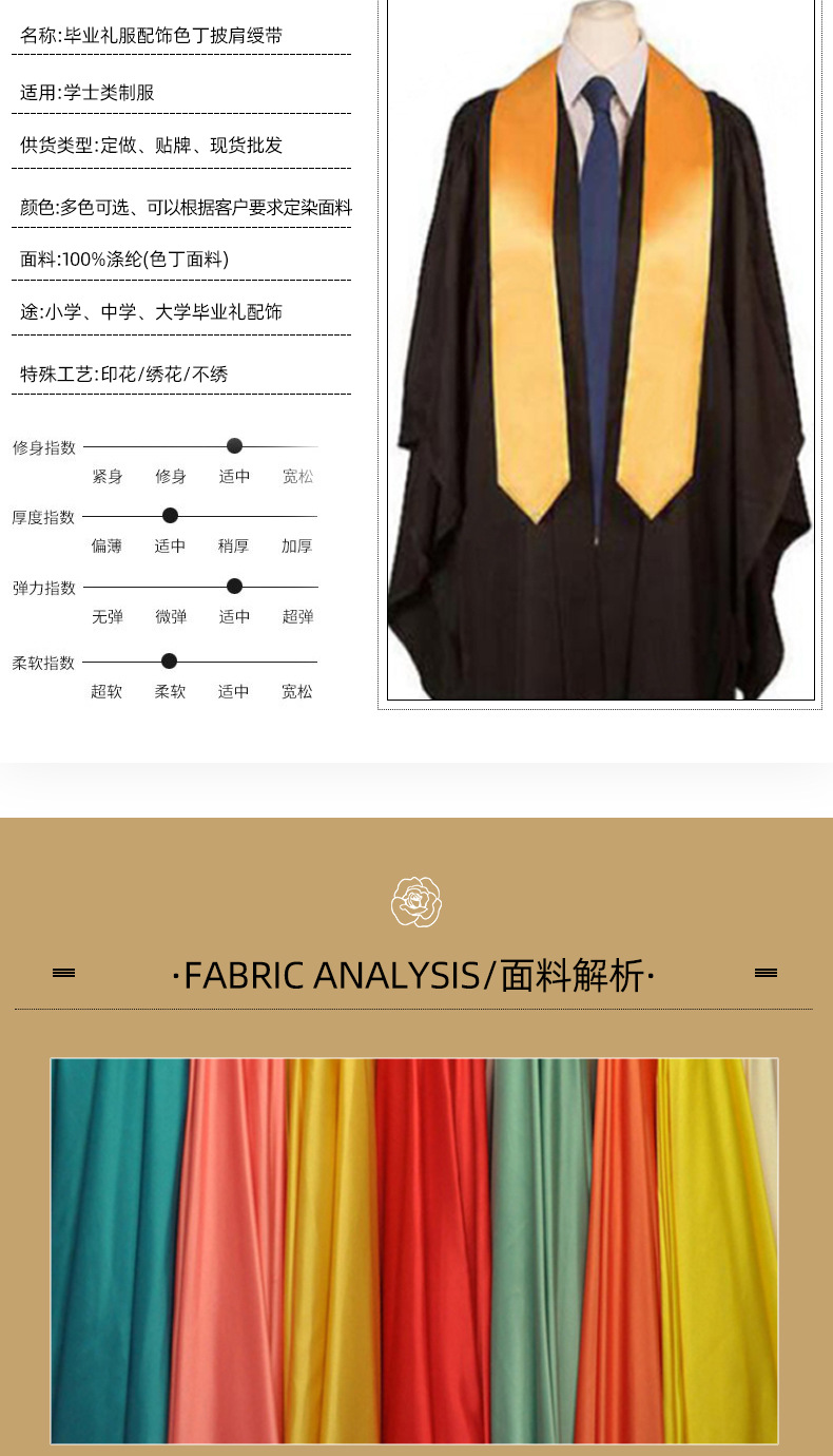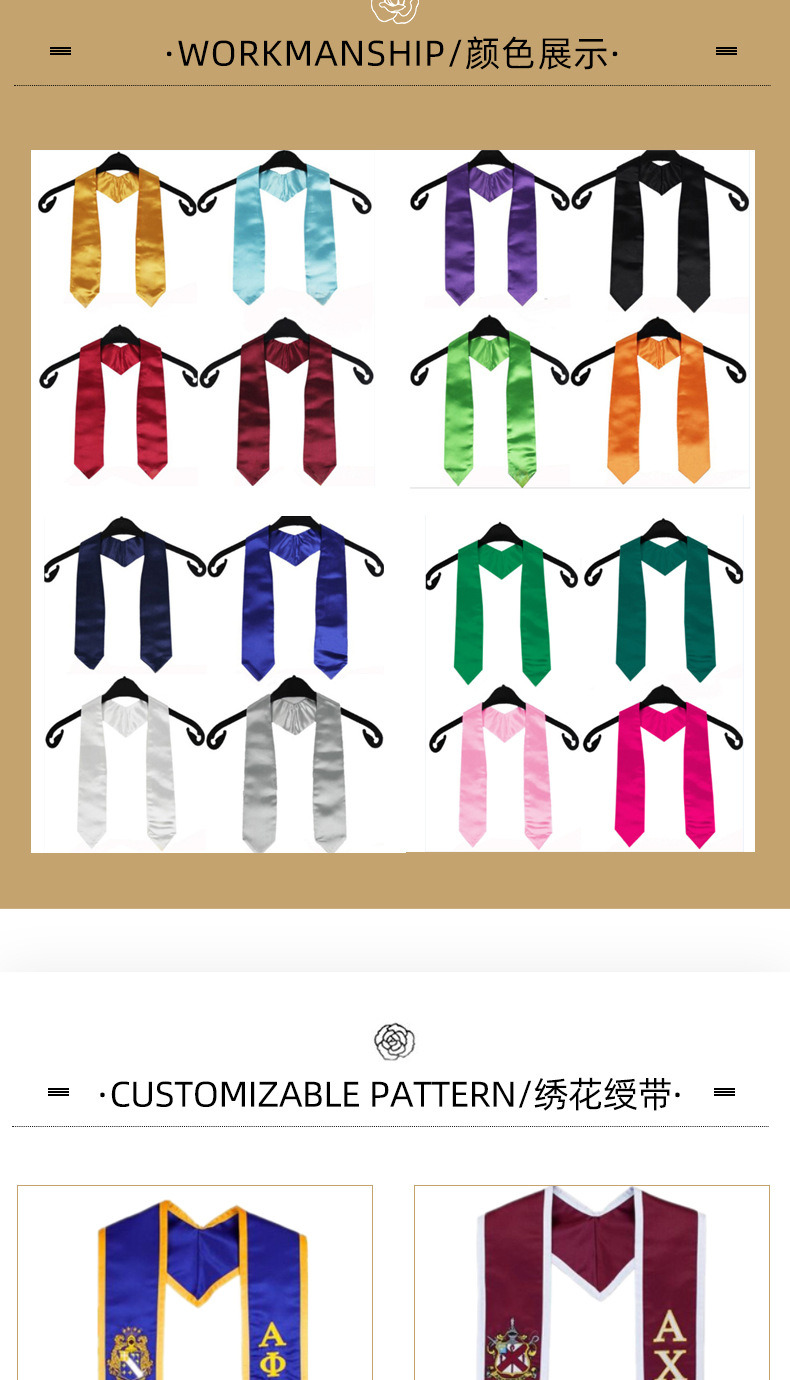 Тога бакалавра, выпускная лента, однотонная, для университета, для взрослых, церемониальная, плоская лента, с возможностью нанесения логотипа, для награждения