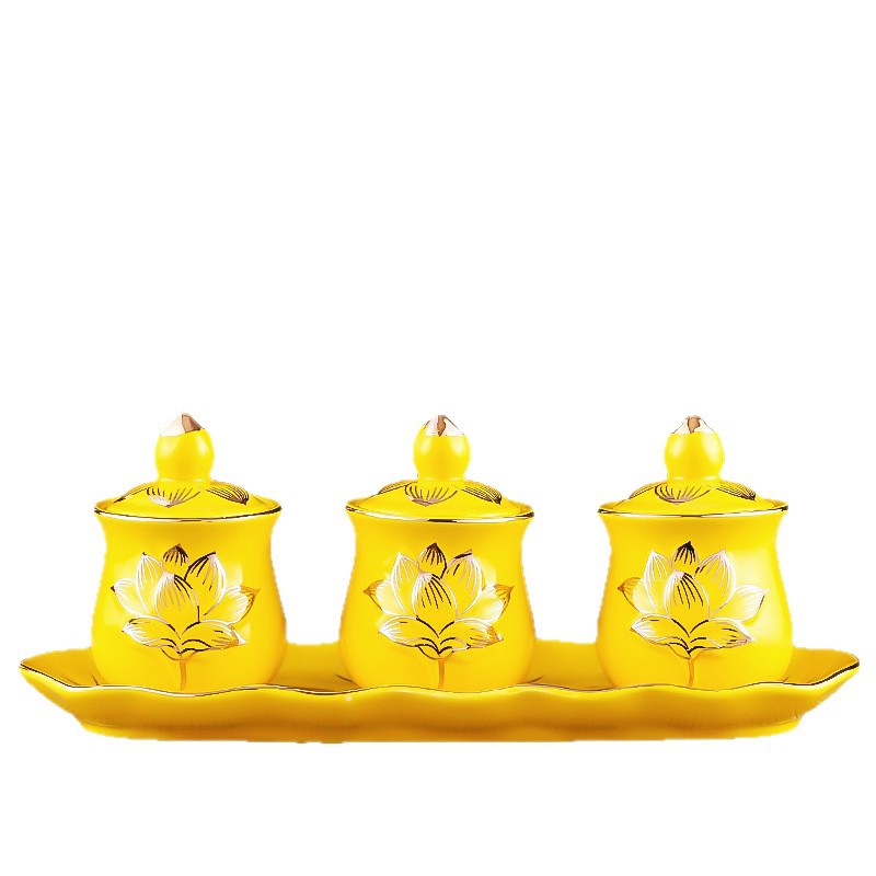 Керамическая чашка Чашка для священной воды Главная Крепость Будды Чашка для Дани Набор из трех предметов для Бога богатства Чашка для очистки воды Гуаньинь Украшения для чашки Будды
