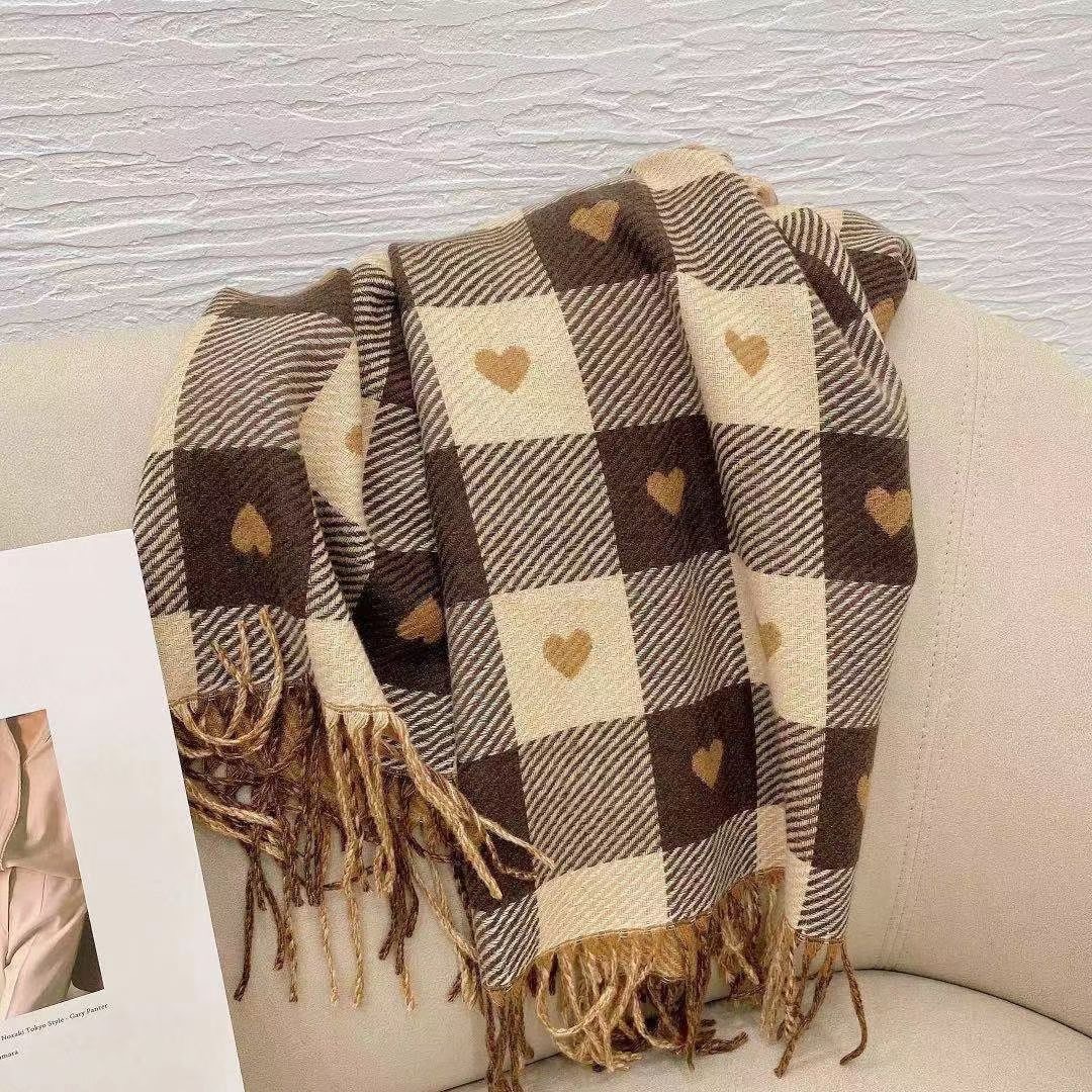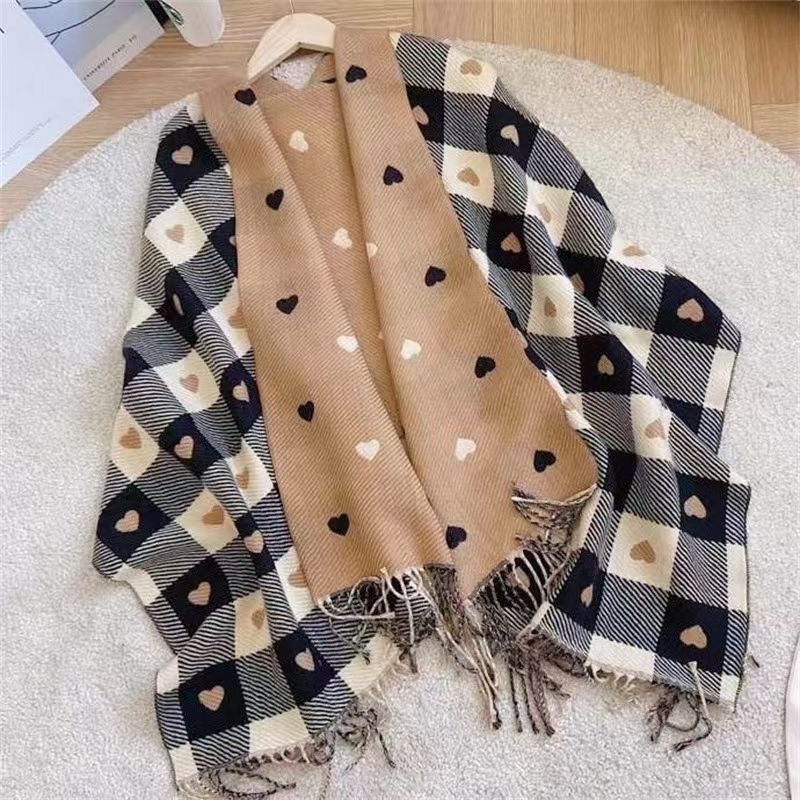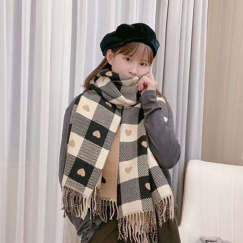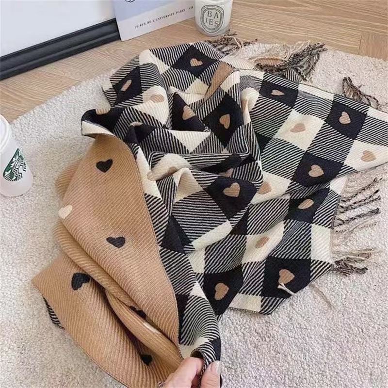 Двусторонняя сетка любви подсеть красный кашемировый Женский Зимний Джокер Корейская версия шали, внешний шарф, теплый утолщенный шарф