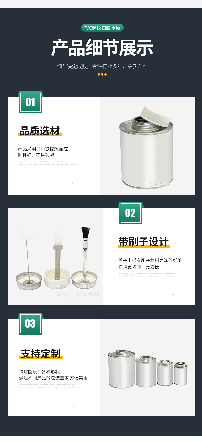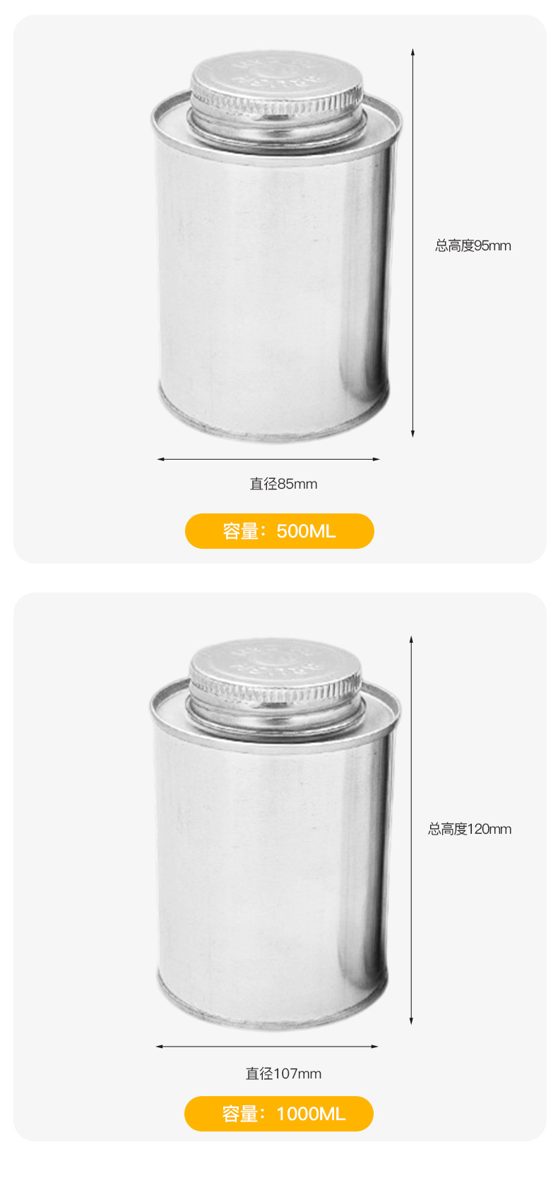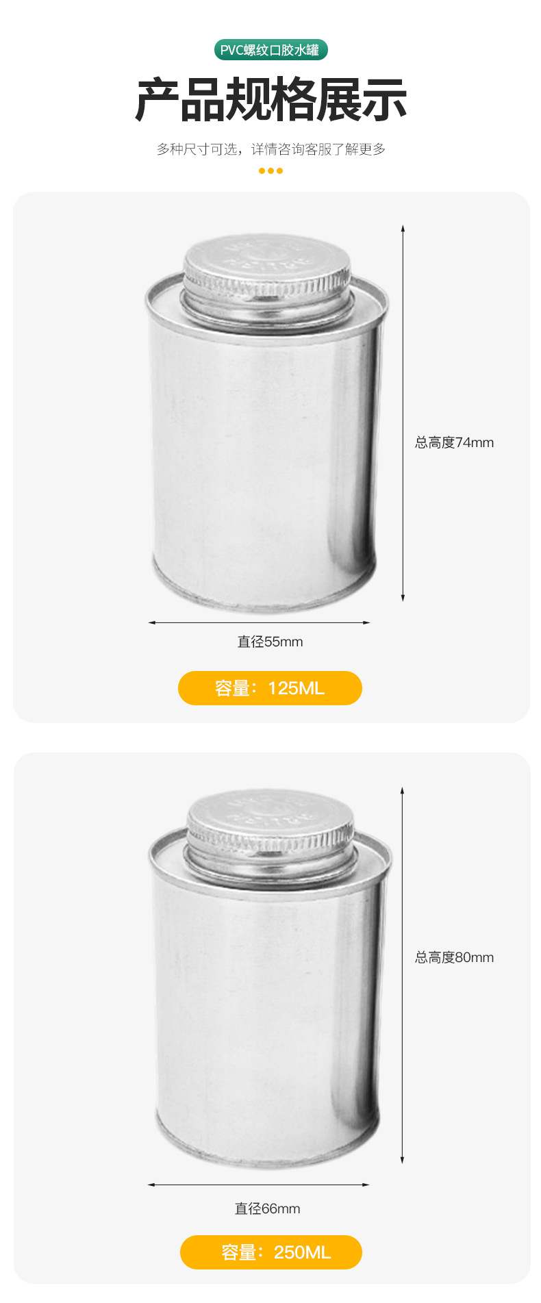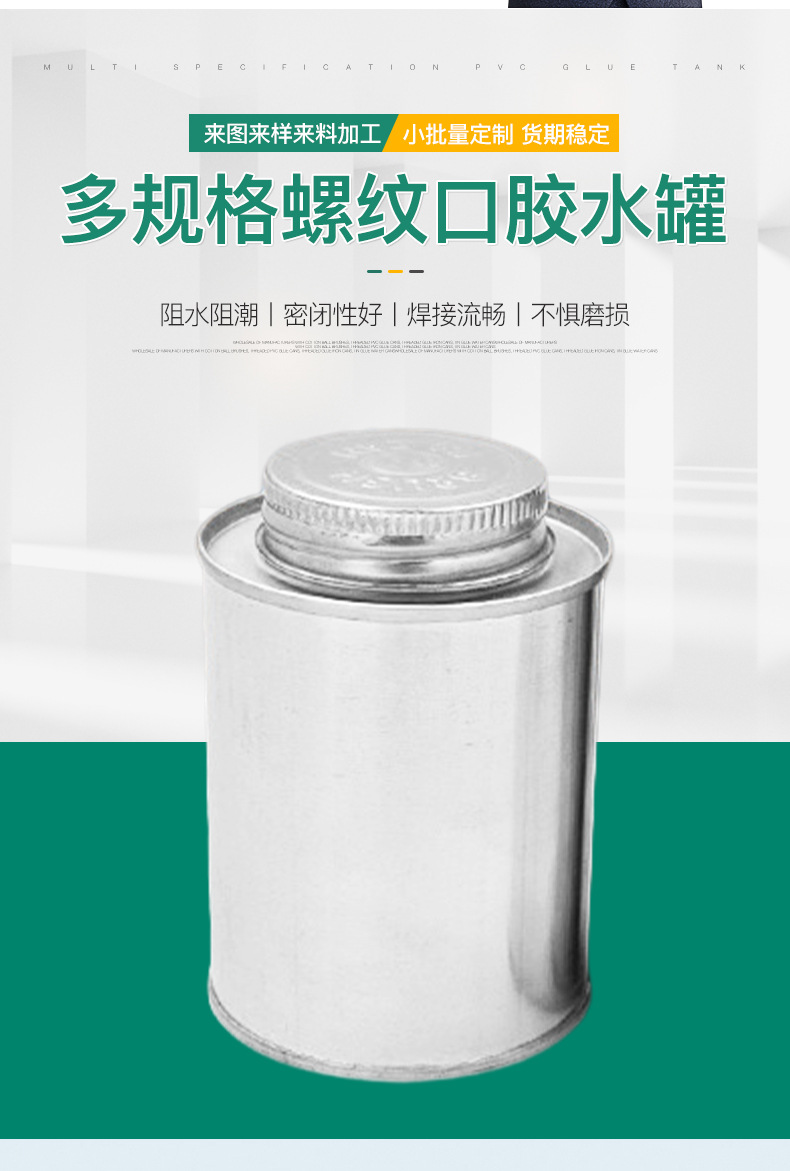Клей из ПВХ, железная банка с резьбовым горлышком, железная банка с несколькими спецификациями и пластиковой кистью, жесть производителя, круглая клеевая банка