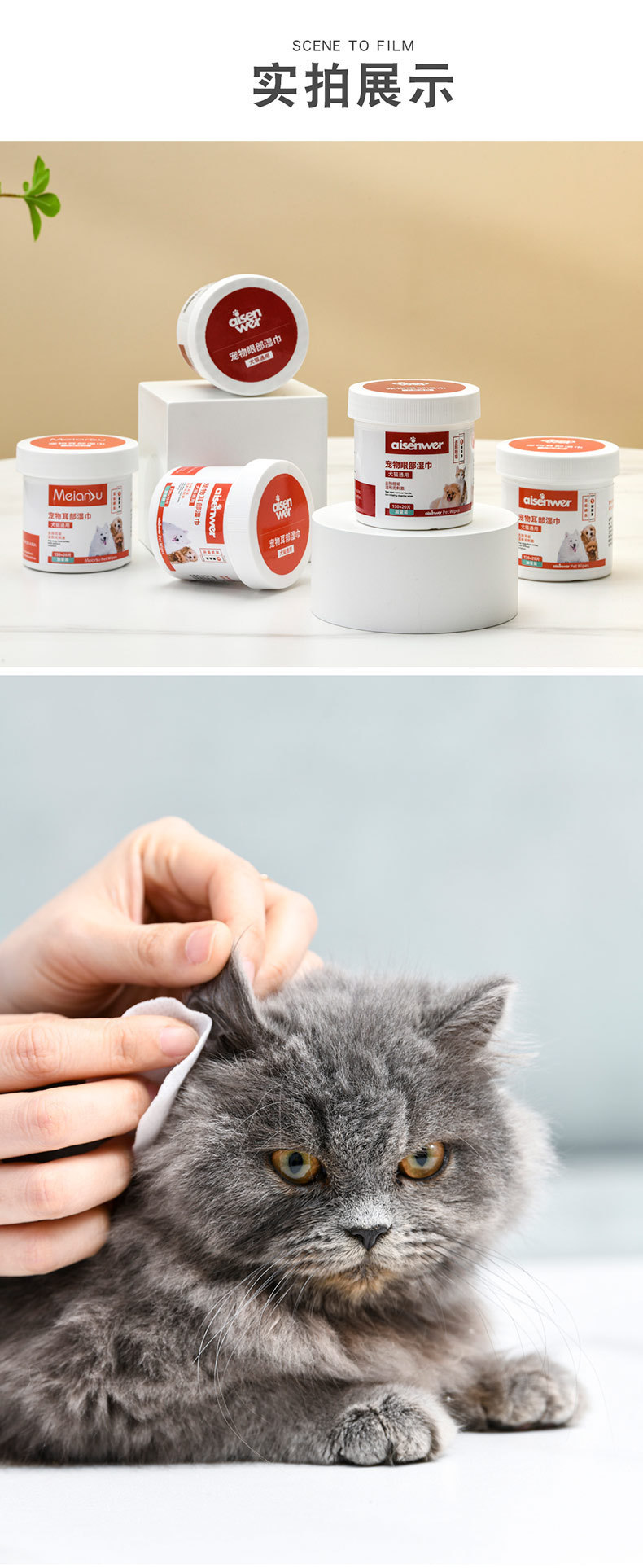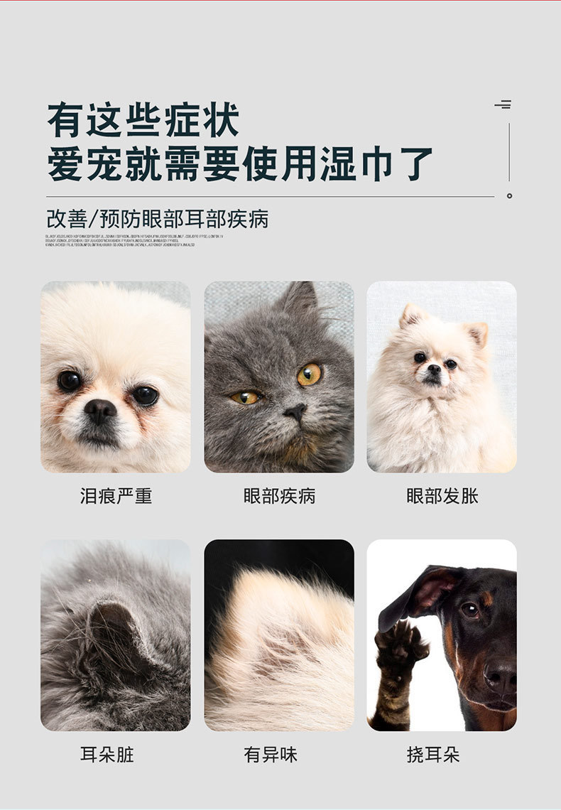 Влажные салфетки для кошек и собак, универсальное средство для удаления пятен от слез глаз и ушей, щетка для чистки глаз, антибактериальное средство.