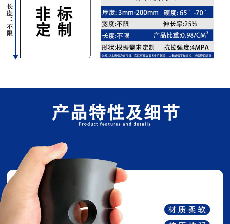 Износостойкая нейлоновая пластина для футеровки угольных бункеров, содержащая редкоземельные металлы, с маслостойкой нейлоновой подложкой, синяя, MC901, литая нейлоновая пластина