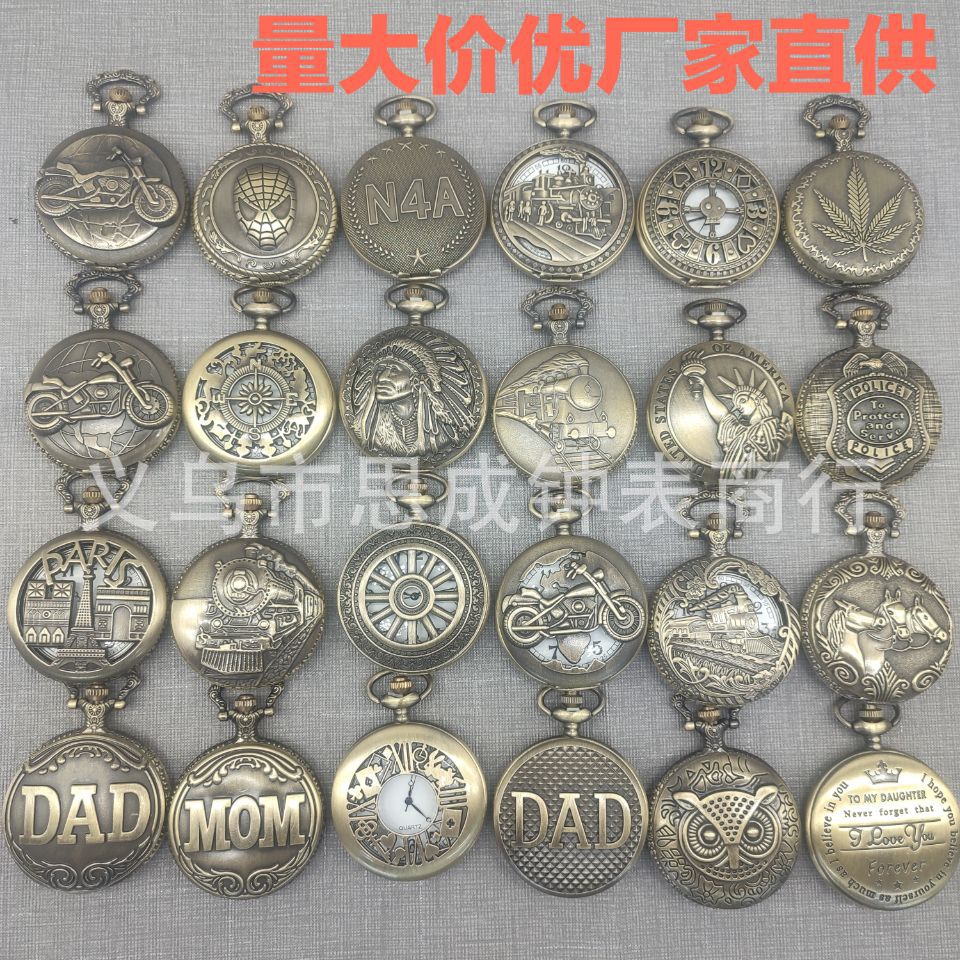 Трансграничные горячие продажи большой бронзовый резной полый локомотив кварцевые карманные часы спот внешняя торговля ретро карманные часы