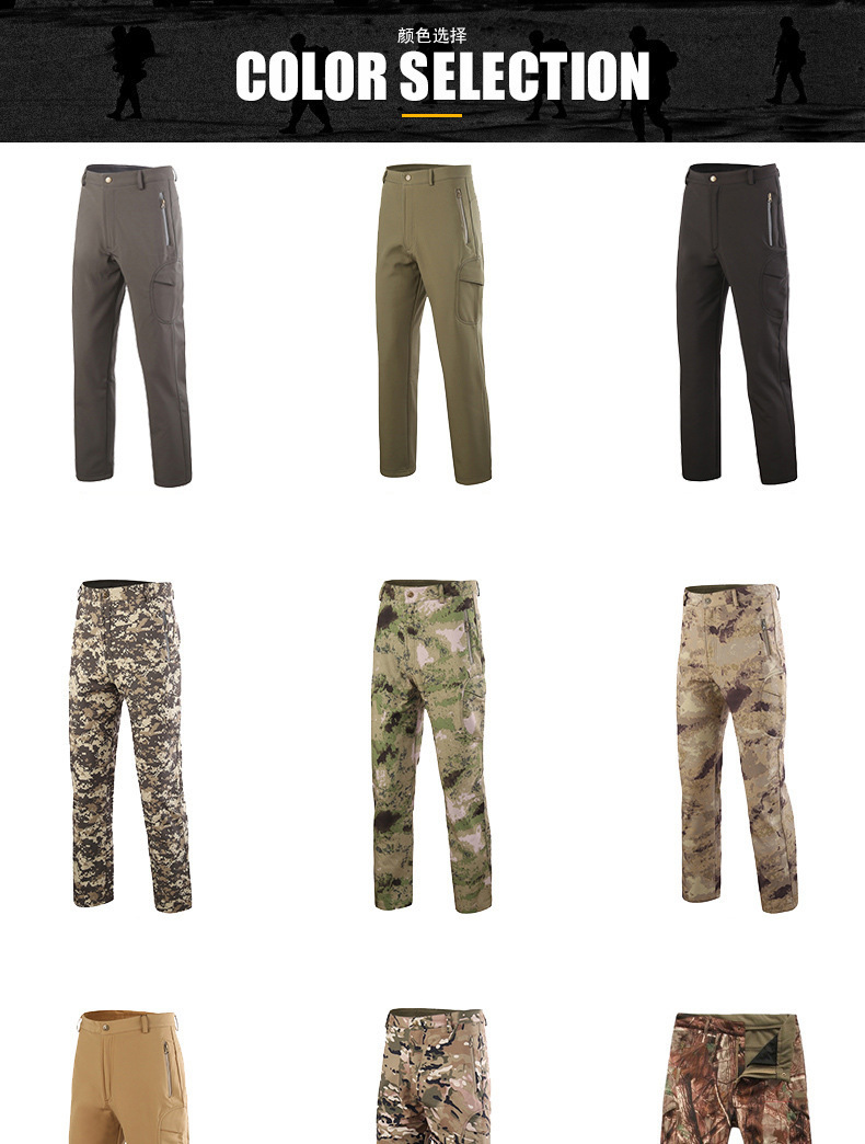 ESDY мужской открытый спорт флисовая мягкая оболочка Штурмовые штаны из кожи акулы Штурмовые штаны на открытом воздухе Спортивные брюки B001