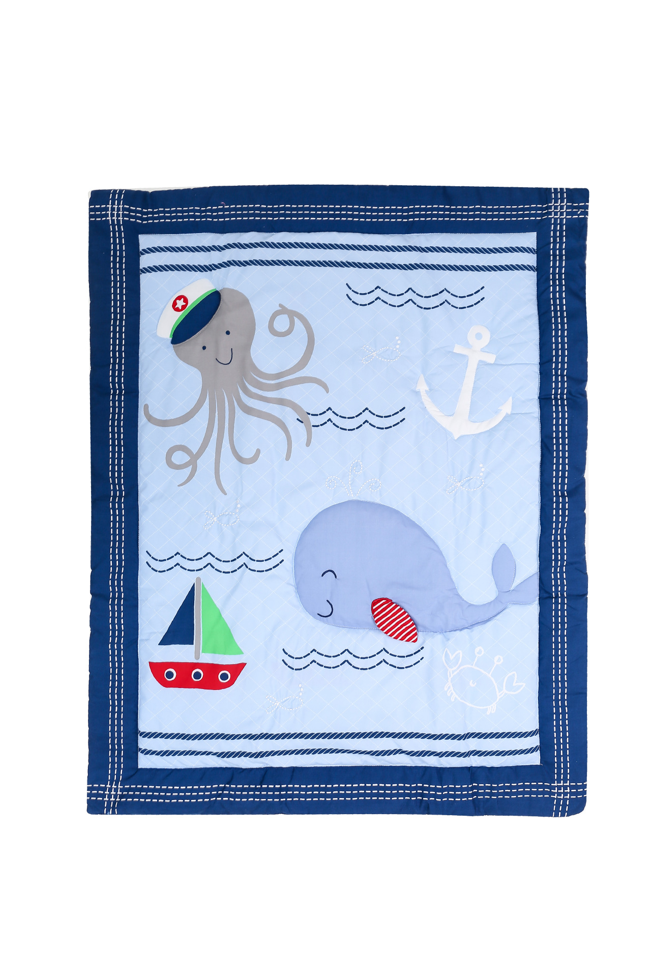 本款童被面版上面采用贴布绣,做工精美细致,质量上乘。