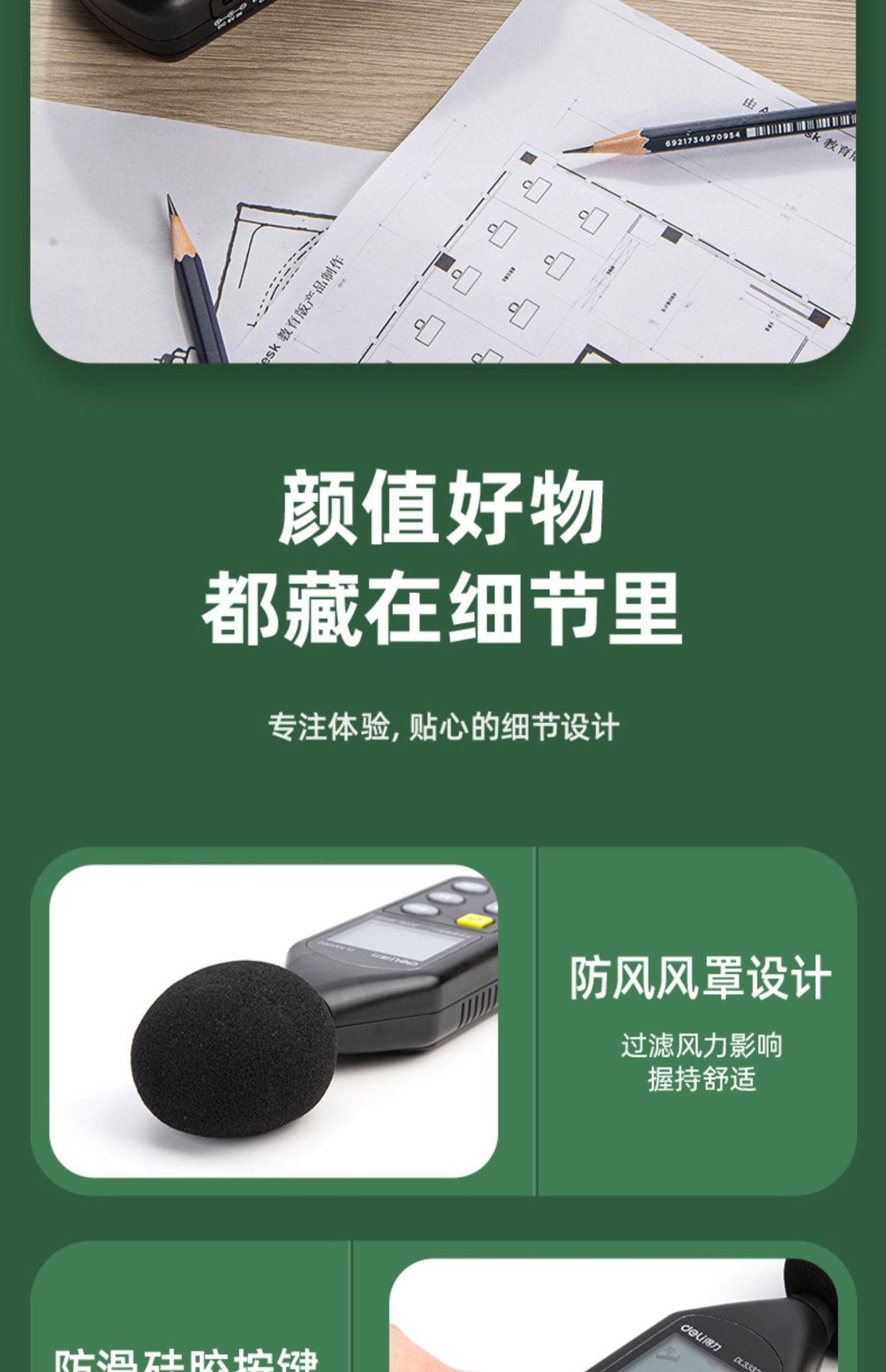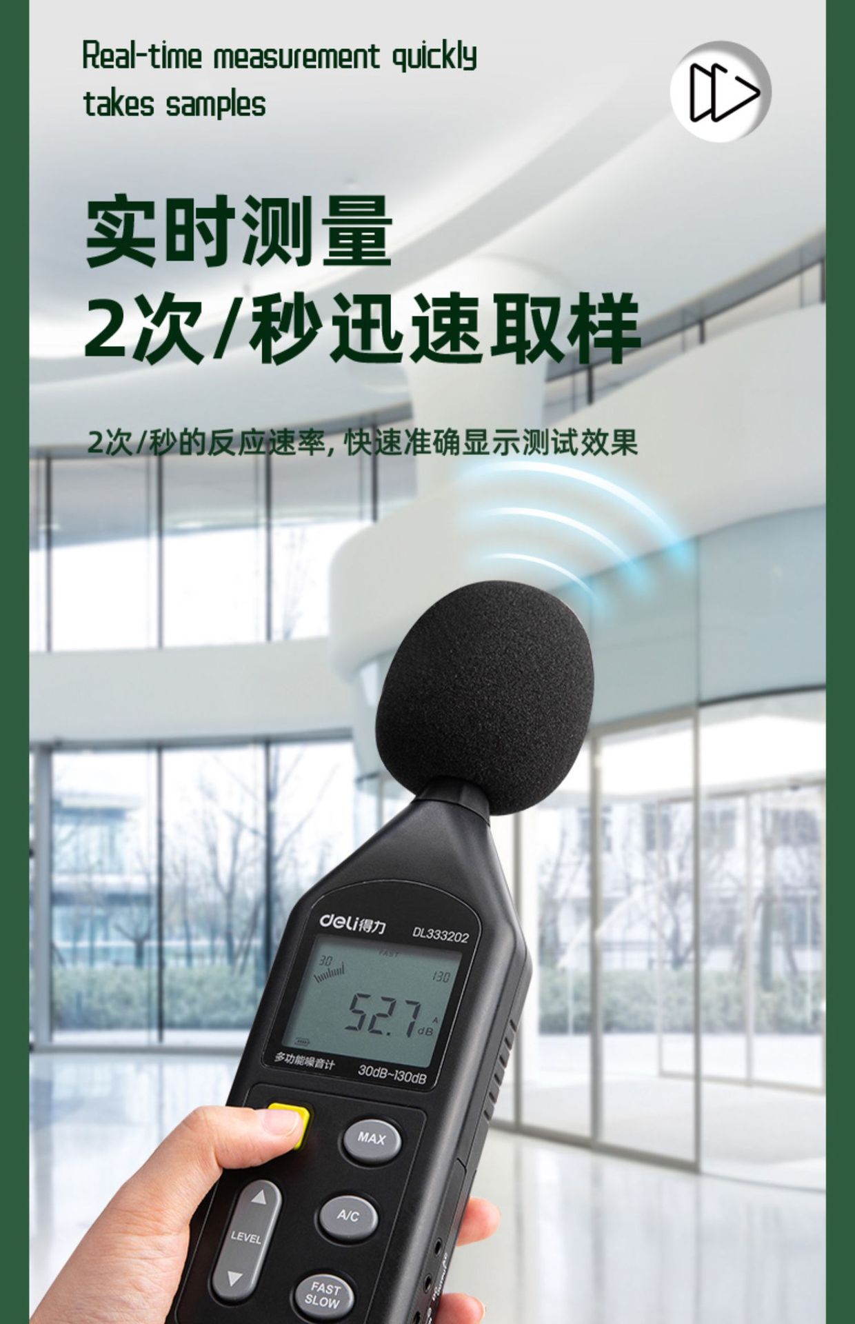 Deli шум метр обнаружения децибел цифровой звуковой тест инструмент Профессиональный высокоточный измерительный прибор DL333202